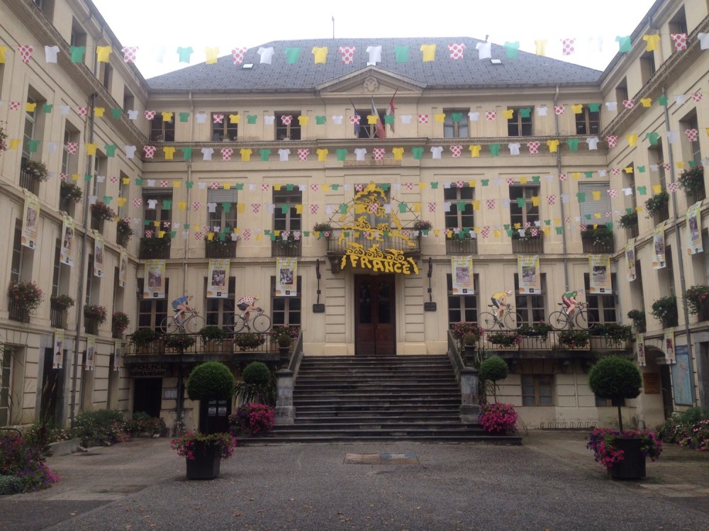 Les célèbres allées d’Etigny et ses commerces (et sa mairie spécialement décorée pour le passage du Tour de France)