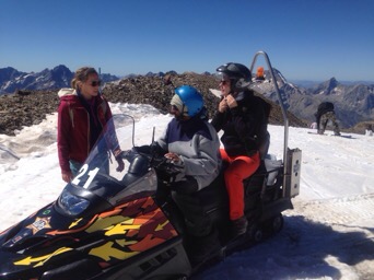 Mercredi 24 août 2016 : expédition au glacier à 3600m ! Grandiose ! Pouvoir sentir la neige craquer sous ses pieds en plein mois d’août fait sans aucun doute partie des grands luxes français. Montée grâce au Jandri Express puis descente de 2600 à 1600m par le sentier du Diable. Qui porte sacrément bien son nom car je glisserai sur son herbe grasse et finirai la journée avec une belle entorse…