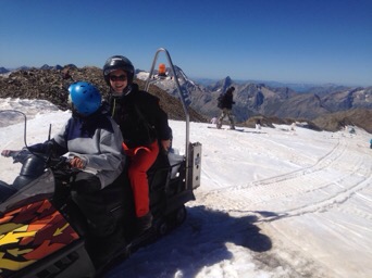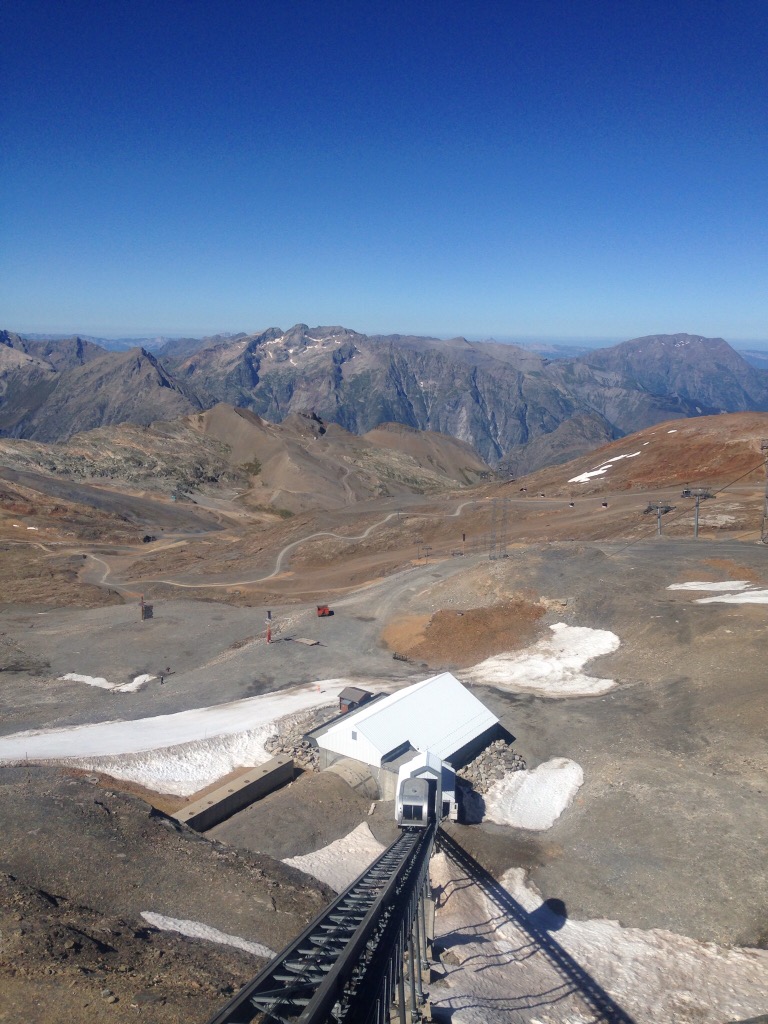 Mercredi 24 août 2016 : expédition au glacier à 3600m ! Grandiose ! Pouvoir sentir la neige craquer sous ses pieds en plein mois d’août fait sans aucun doute partie des grands luxes français. Montée grâce au Jandri Express puis descente de 2600 à 1600m par le sentier du Diable. Qui porte sacrément bien son nom car je glisserai sur son herbe grasse et finirai la journée avec une belle entorse…
