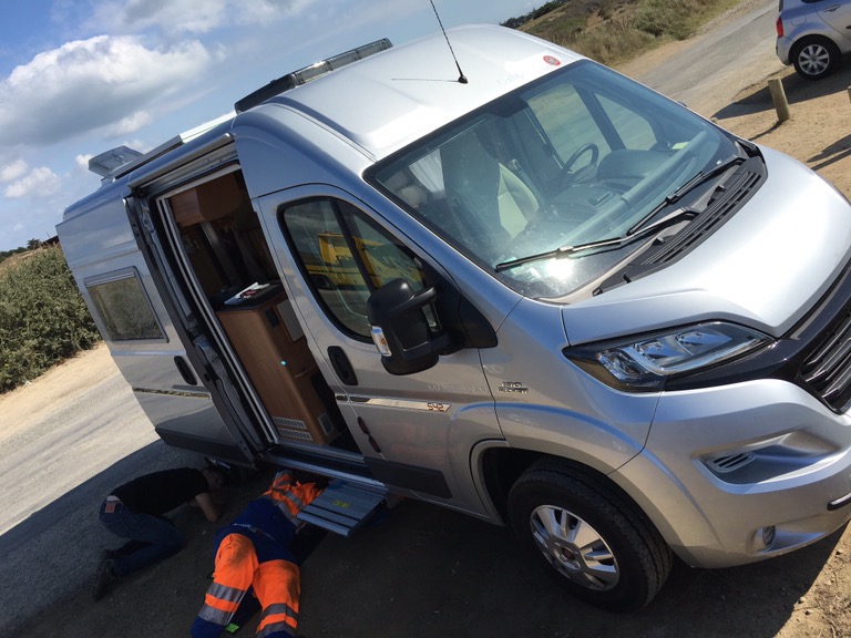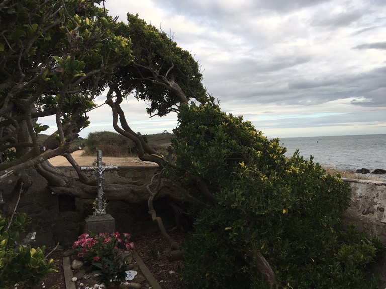 • Jour 4 : promenade le long de la côte sauvage, soleil, et cheveux dans le vent ! Léger souci technique avec le combi (la cuve des eaux usées nous a tout simplement lâchée sur la route… défaut de montage !) et garagiste, avant de rejoindre Quiberon pour déjeuner, et acheter moultes cadeaux à la superbe conserverie de la Belle-Îloise. Sans oublier la boutique Via Maris où nous dénicherons sans y croire le Chage-chinois, aussitôt prénommé Maurice, qui deviendra ami fidèle de Bernard et compagnon de route de Daniel et Martine (je vous invite de nouveau à consulter l’article de Bernard à ce sujet !).