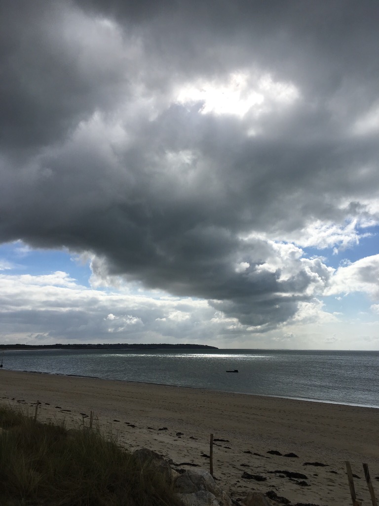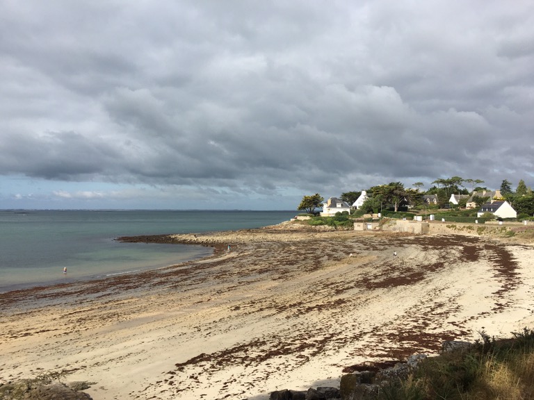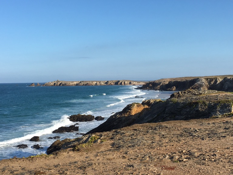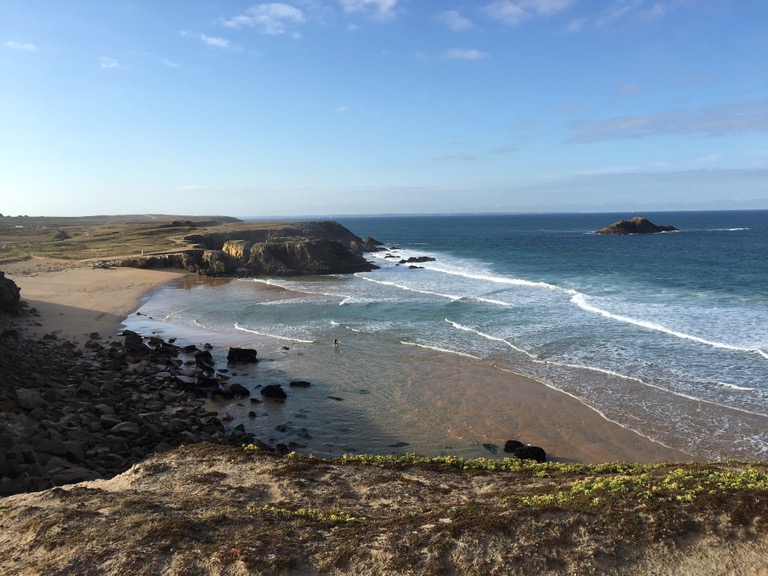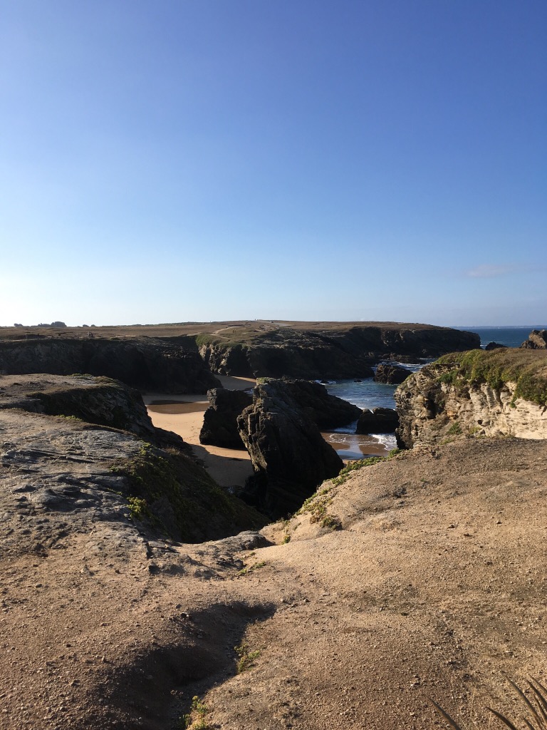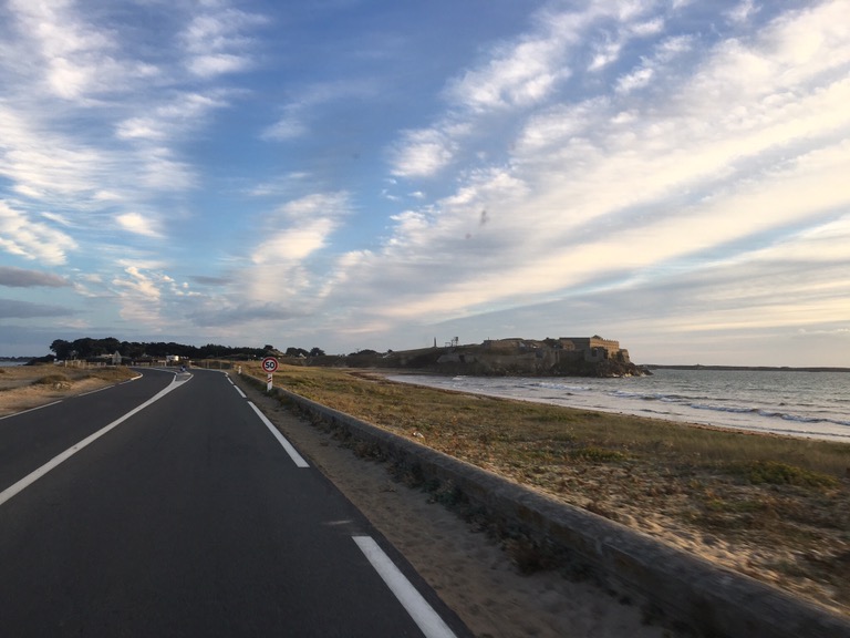 Passage express sur le site des alignements de mégalithes de Carnac au coucher du soleil. À visiter avec un guide absolument (il semble que des réservations anticipées soient possibles). Apéro, dîner et nuit sur un parking « sauvage » (comprendre un parking voiture sans barrière squatté par les combis et les camping-cars) le long de la côte sauvage de Saint-Pierre de Quiberon. Côte qui porte bien son nom tant les marées, courants, le soleil et la lune ont un pouvoir d’attraction irrésistible sur quiconque saurait s’y arrêter.