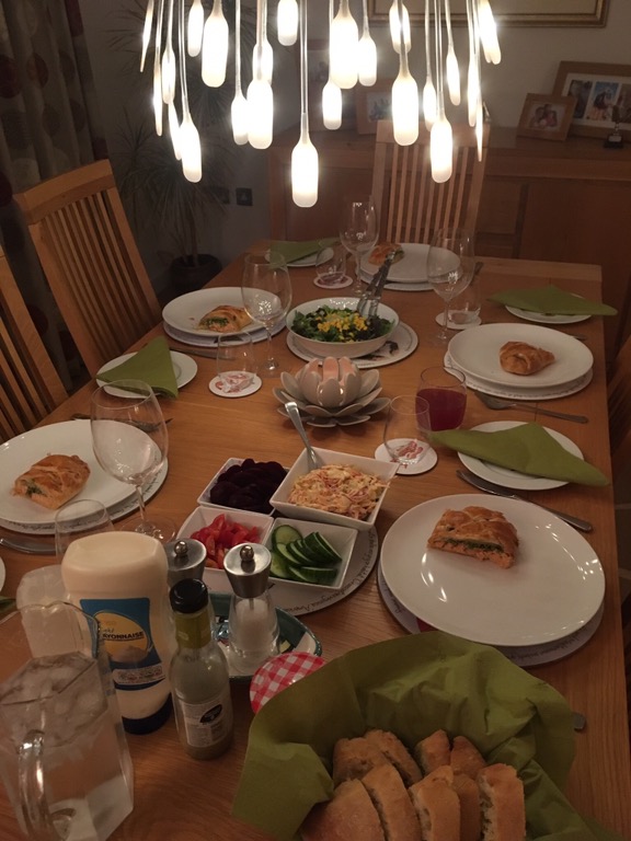 La tresse de saumon et d’asperges doit se manger chaud ! Ainsi, pensez à préparer l’accompagnement pendant la cuisson. Pour cette fois, Tasha nous a concocté du coleslaw maison et une salade de pommes de terre, œufs, oignons rouges, ciboulette, mayonnaise et moutarde. Delicious!