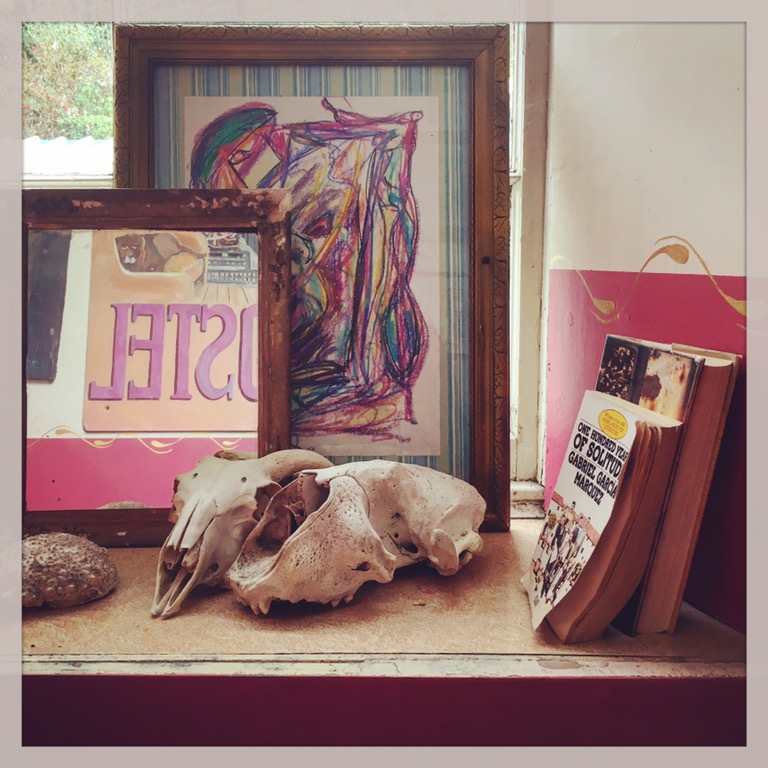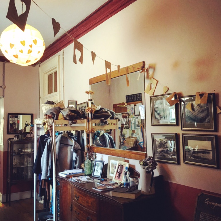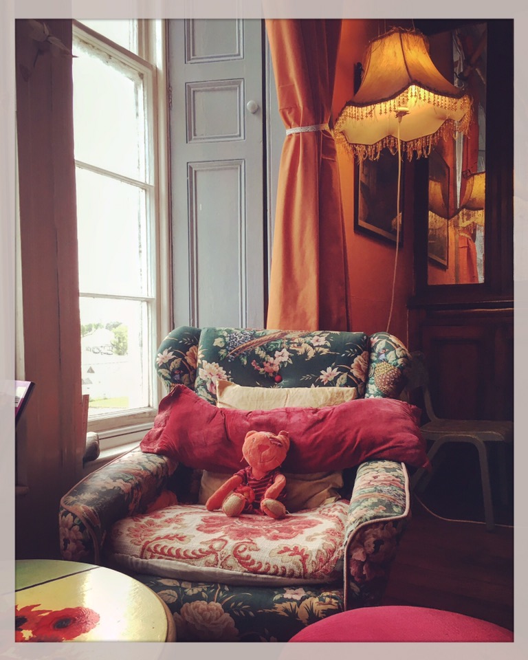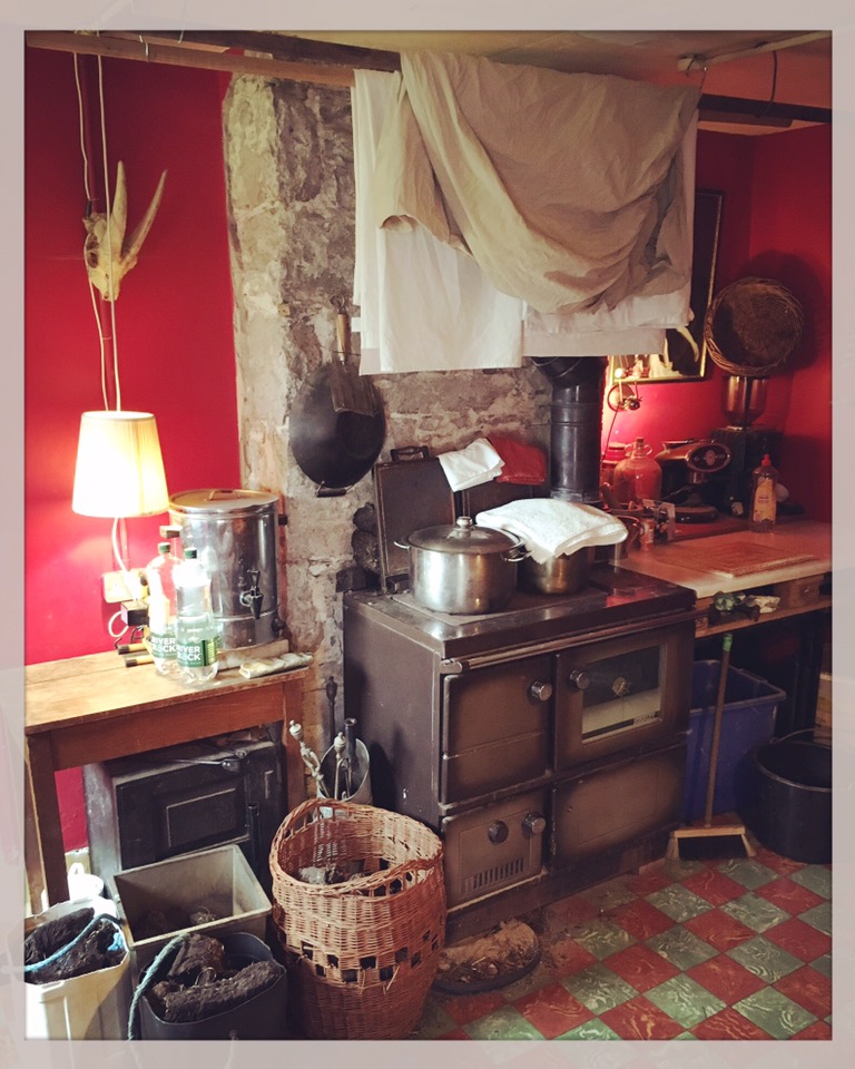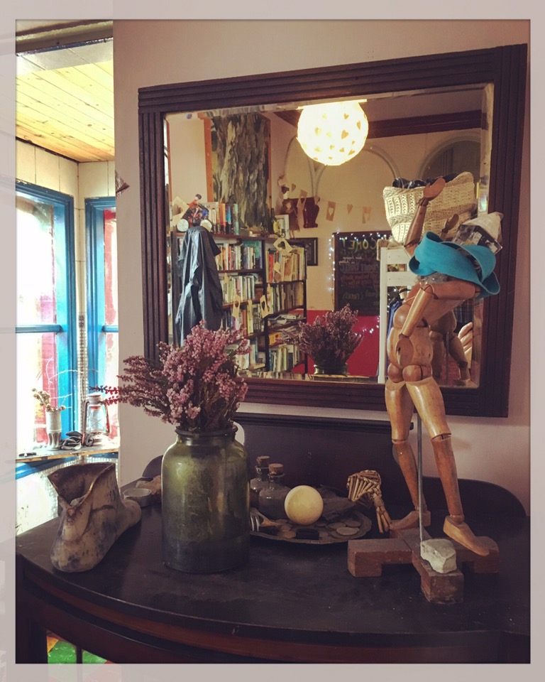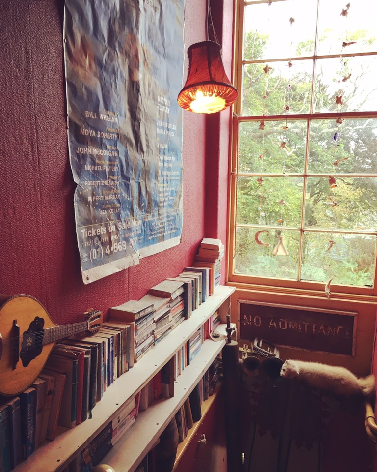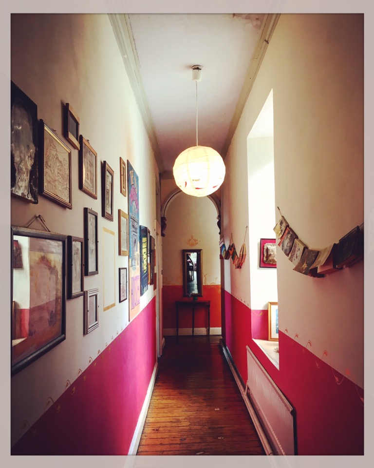 Une voix française. Allez savoir pourquoi cela est si rassurant. Deux jeunes femmes volontaires elles aussi viennent à notre rencontre. Lynn et Marion. Elles deviendront notre phare pour les deux jours à venir, date de leur départ pour le Nord de l’Irlande. Stephen, le boss, n’est pas bien loin, on le verra tout à l’heure. En attendant, elles nous font visiter les lieux. Notre déambulation éveille deux mots dans mon esprit : magique et chaotique. Une sensation de douce étrangeté nous enveloppe, tout est si cosy. Des coins et des recoins partout, impossible d’embrasser l’espace d’un coup d’œil. Je découvre encore des meubles et des objets à l’heure où je vous écris. Une sorte de brocante géante où rien ne serait à vendre. Disons plutôt que les milliers de visiteurs ayant un jour mis les pieds ici semblent avoir chacun oublié une partie de leurs effets. Un monde à part, entre le pays des merveilles d’Alice et les aventures des chevaliers de la table ronde. Nous sommes en terre celtique, ne l’oublions pas. Un air de chant gaélique flotte continuellement dans cette vaste maison (hantée, qui sait ?).