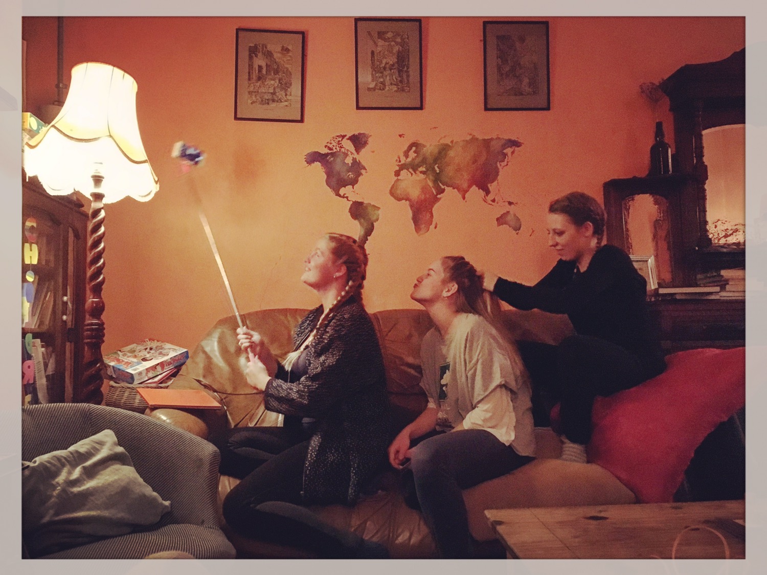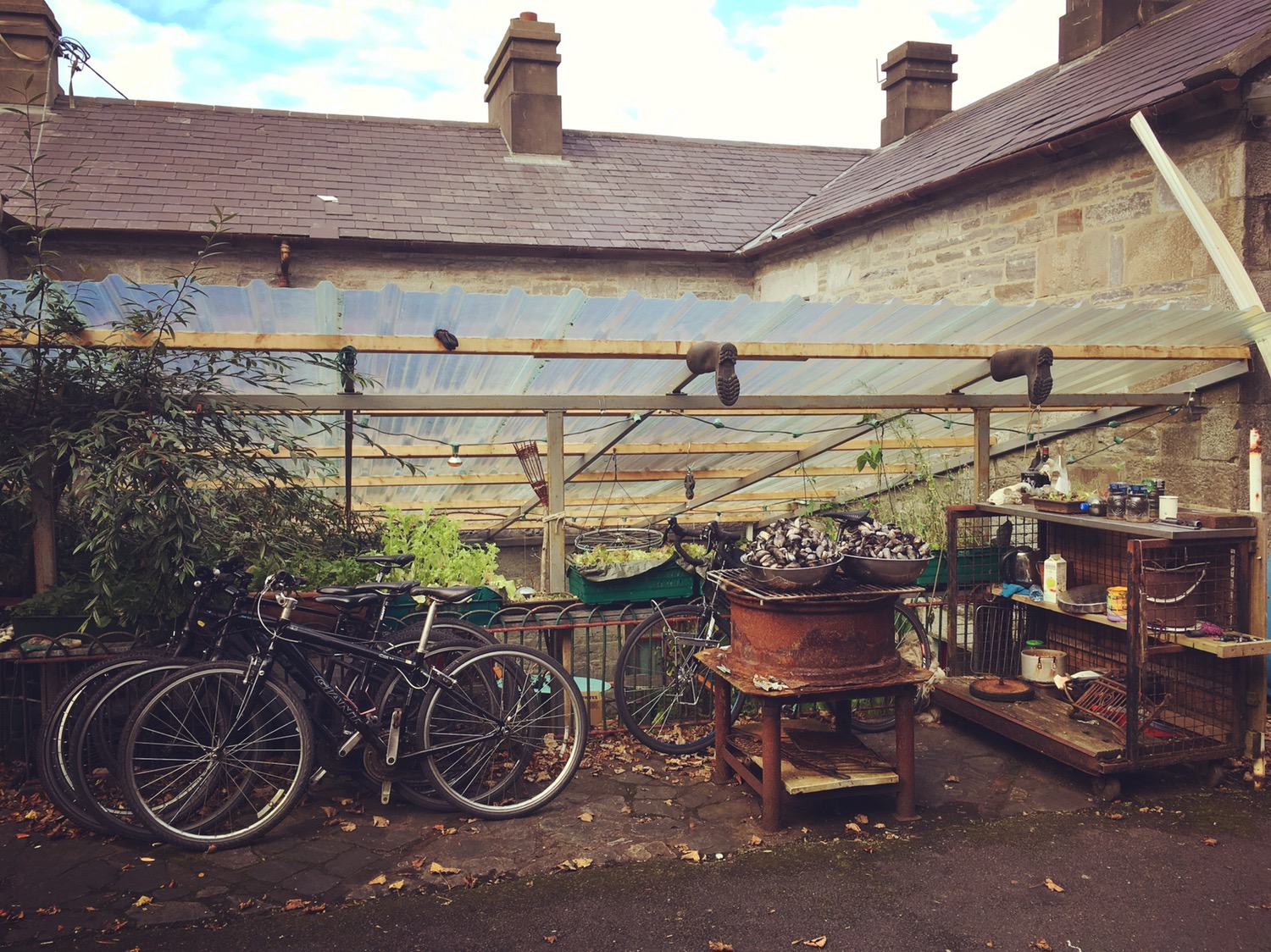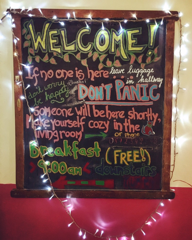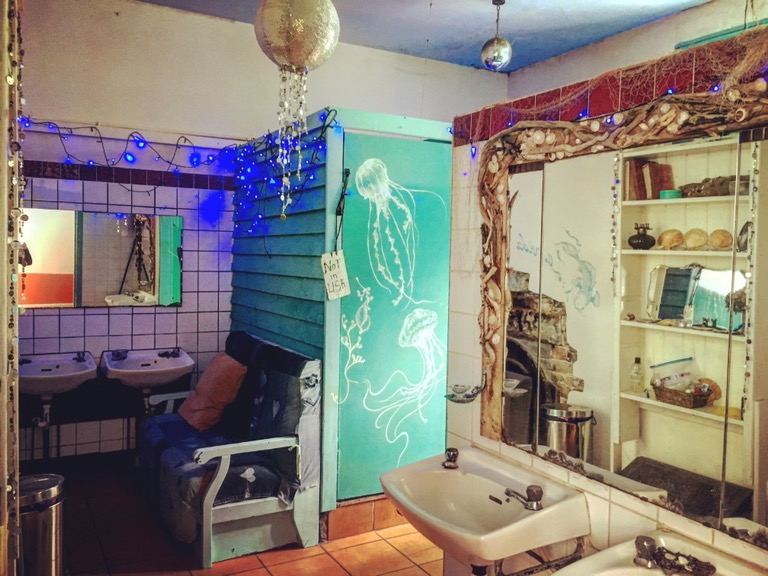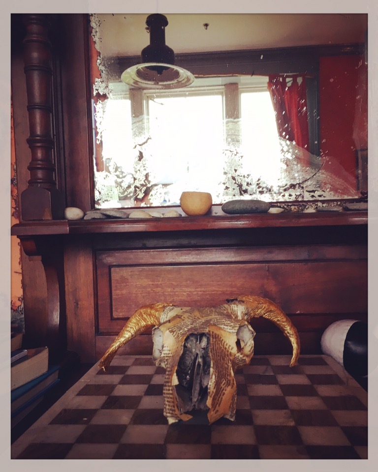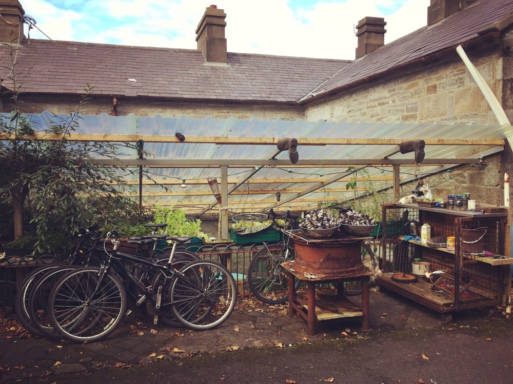 Une voix française. Allez savoir pourquoi cela est si rassurant. Deux jeunes femmes volontaires elles aussi viennent à notre rencontre. Lynn et Marion. Elles deviendront notre phare pour les deux jours à venir, date de leur départ pour le Nord de l’Irlande. Stephen, le boss, n’est pas bien loin, on le verra tout à l’heure. En attendant, elles nous font visiter les lieux. Notre déambulation éveille deux mots dans mon esprit : magique et chaotique. Une sensation de douce étrangeté nous enveloppe, tout est si cosy. Des coins et des recoins partout, impossible d’embrasser l’espace d’un coup d’œil. Je découvre encore des meubles et des objets à l’heure où je vous écris. Une sorte de brocante géante où rien ne serait à vendre. Disons plutôt que les milliers de visiteurs ayant un jour mis les pieds ici semblent avoir chacun oublié une partie de leurs effets. Un monde à part, entre le pays des merveilles d’Alice et les aventures des chevaliers de la table ronde. Nous sommes en terre celtique, ne l’oublions pas. Un air de chant gaélique flotte continuellement dans cette vaste maison (hantée, qui sait ?).