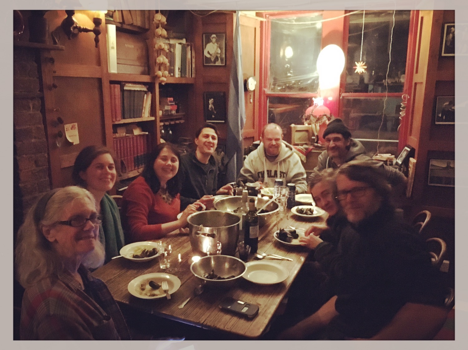 Le repas du soir dans la salle à manger. Au menu, moules fraîches ramassées de l’après midi !