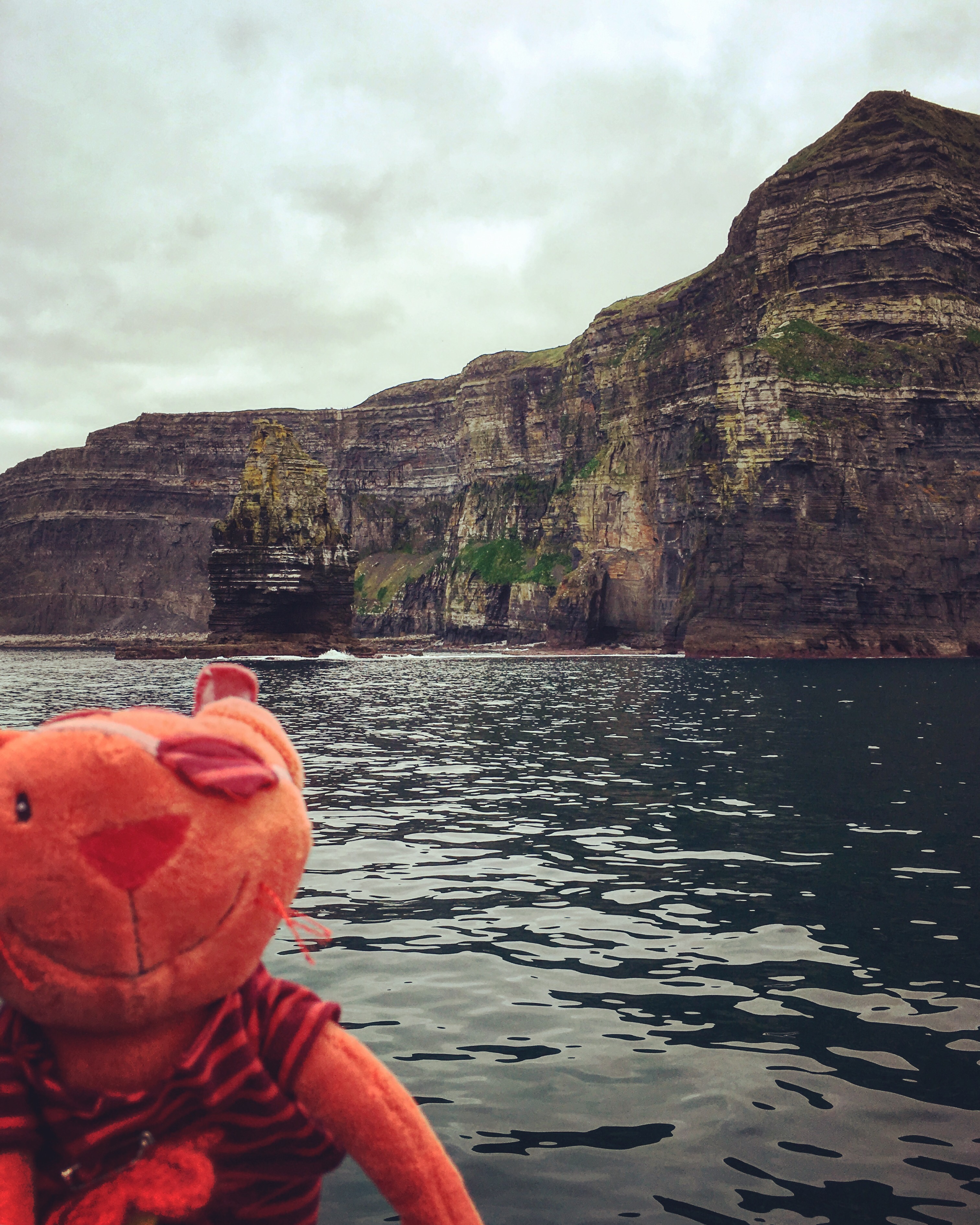 Ne pouvant nous décider entre les observer depuis la mer ou en les parcourant, nous avons décidé de faire les deux ! Nous avons donc rejoint Doolin où nous avons d’abord embarqué pour un tour d’une heure en bateau… qui était très en retard. Heureusement, une attraction locale est venue nous divertir une petite heure…