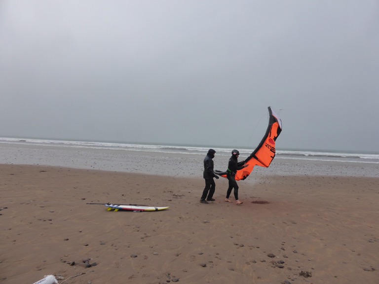 Simon aide Ryan a déployer son kite. Et ici la vidéo qui va avec (ça vente, be careful!)