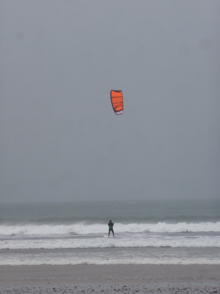 Alors que nous partions pour une marche matinale avec Simon, Ryan nous suggéra de prendre à gauche sur la plage afin de le retrouver en cession kitesurf. C’est donc sous la tempête et avec du sable plein les yeux que nous avons suivi son conseil. Et on ne l’a pas regretté ! On a pu constater le niveau du gars en live ! Et en effet, on a affaire à un big pro, sponsorisé par GoPro, Ozone, O’Neill… entre autre.