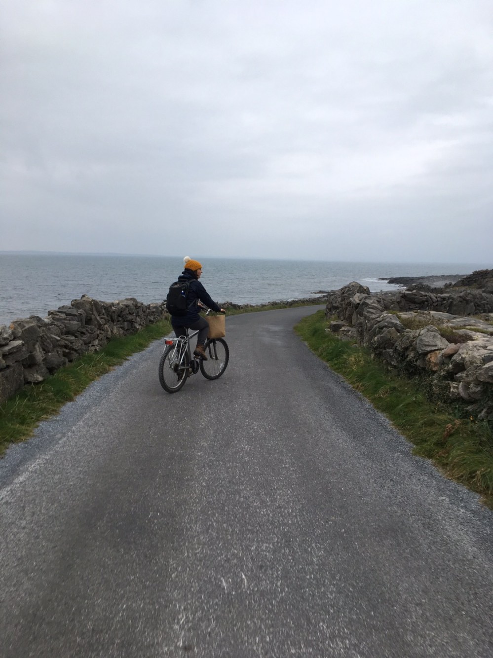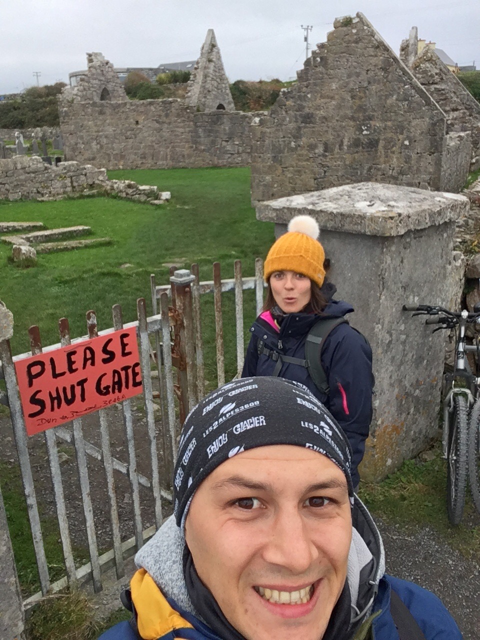 Sillonner les routes de l’île à vélo nous a permis d’atteindre les falaises de 100m de haut qui font face aux montagnes du Connemara (qu’on n’a pas vu étant donné la météo bien entendu !)