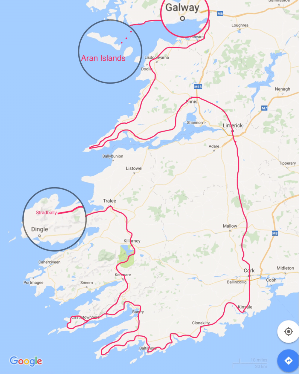 Voici notre périple, étalé sur 8 jours. Point de départ : Galway. Point d’arrivée : notre nouvelle famille à Stradbally.