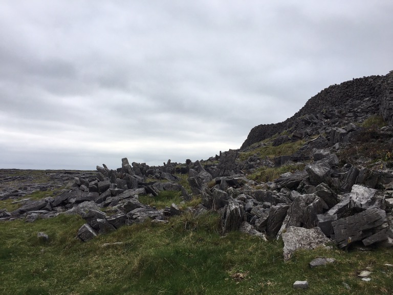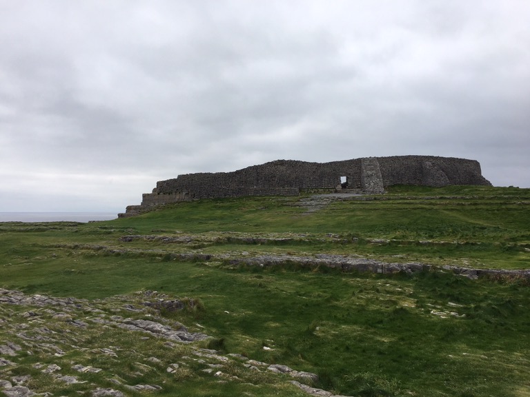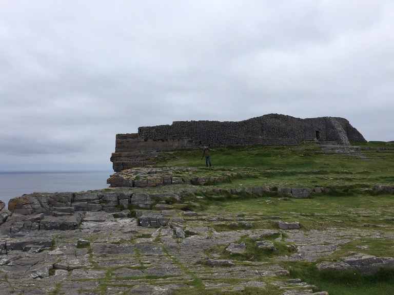 Au même niveau que les falaises, nous avons pu visiter Dun Aengus, l’un des forts préhistoriques les mieux conservés d’Europe. Il aurait été construit vers -1100 avant JC, en forme semi-circulaire, pour défendre l’île en cas d’attaque par la mer (les mecs ayant ce projet avaient plutôt intérêt à bien pratiquer l’escalade !).