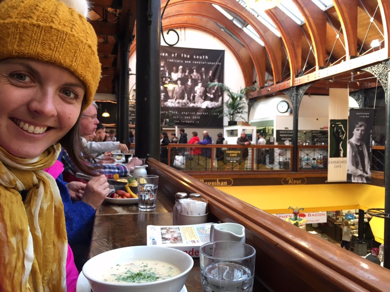 Déjeuner dans le mythique English Market de Cork datant de 1780 ! Le Farmgate Cafe surplombe la fontaine d’origine et sert une très bonne cuisine avec tout plein de produits frais ! Yummyyy !