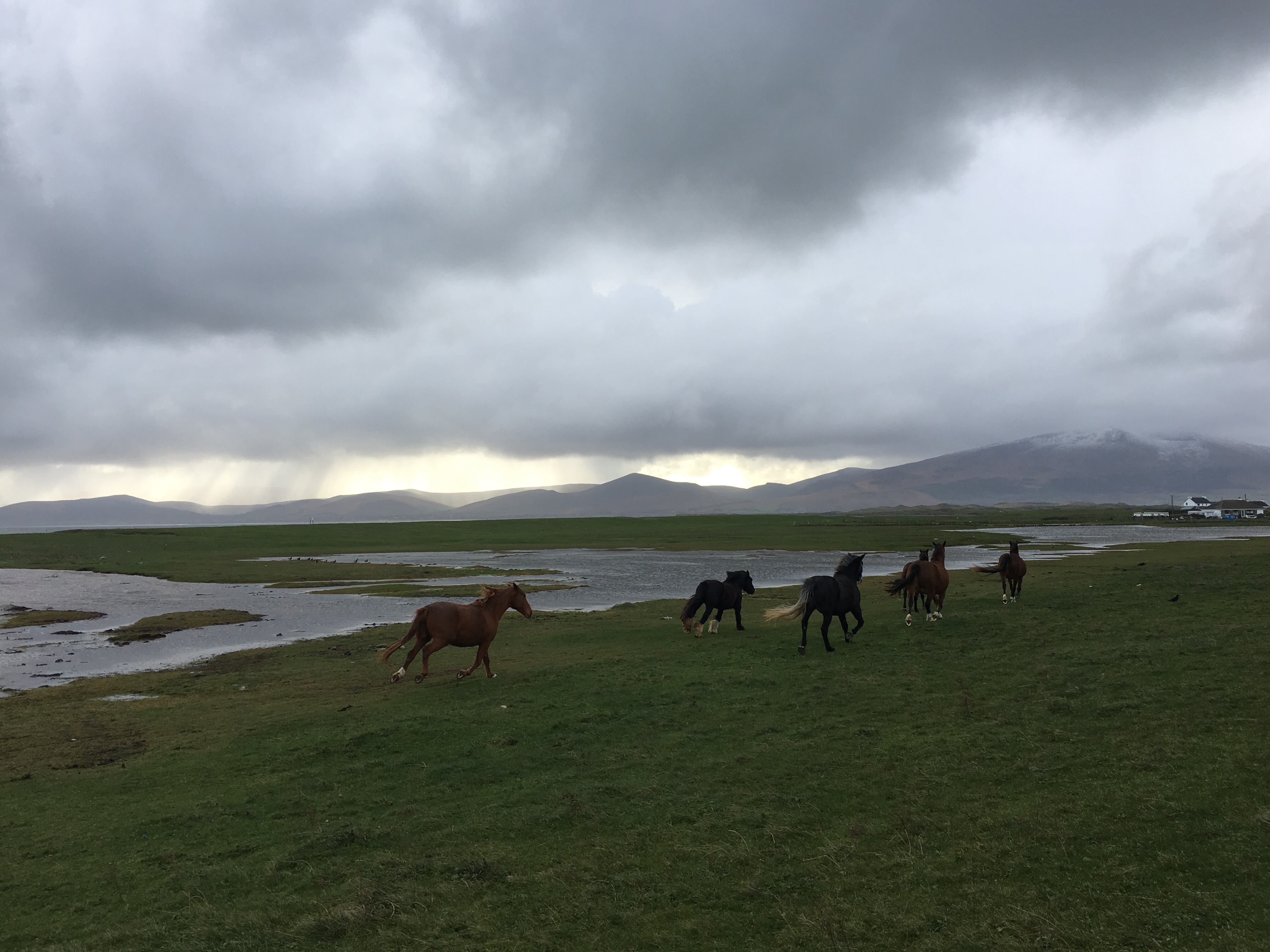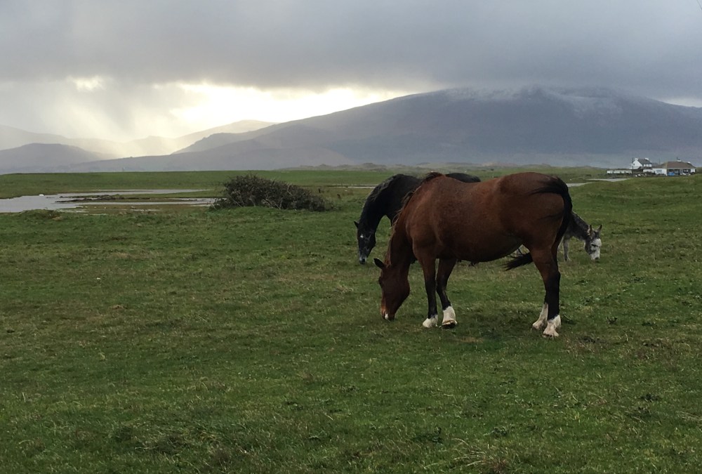 On ne voit pas trop la neige mais les chevaux en liberté sont apparus par effraction devant notre objectif… donc bon…