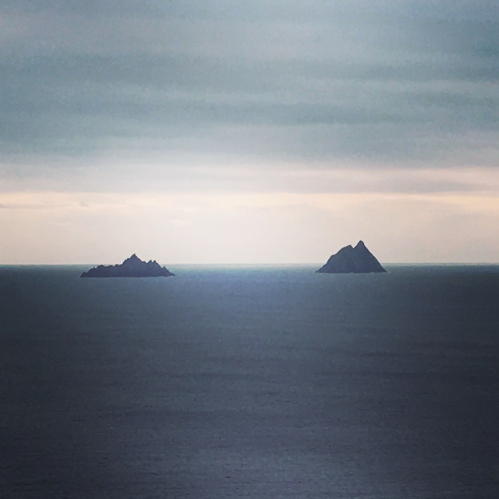 Ohhhhh la voilà, la superbe Skellig Michael à droite, culminant à plus de 200m d’altitude et Little Skellig à ses côtés, inhabitée depuis toujours.