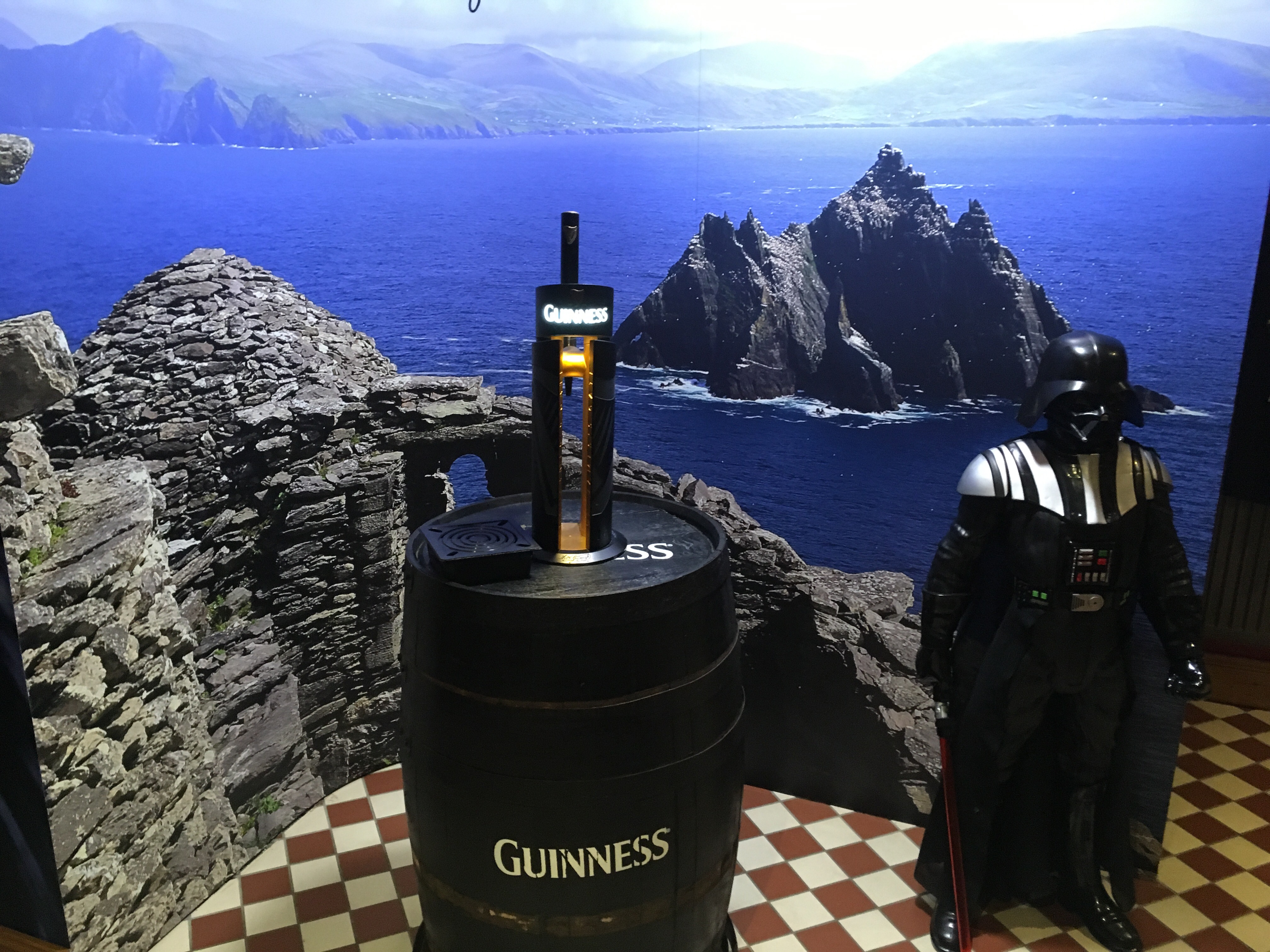 Et là un article sur le site de l’office du tourisme irlandais qui conte l’aventure Star Wars sur ses terres ainsi que l’apprentissage de Luke Skywalker à tirer une pinte de Guinness au Bridge Bar de Portmagee où nous avons dîné par hasard !