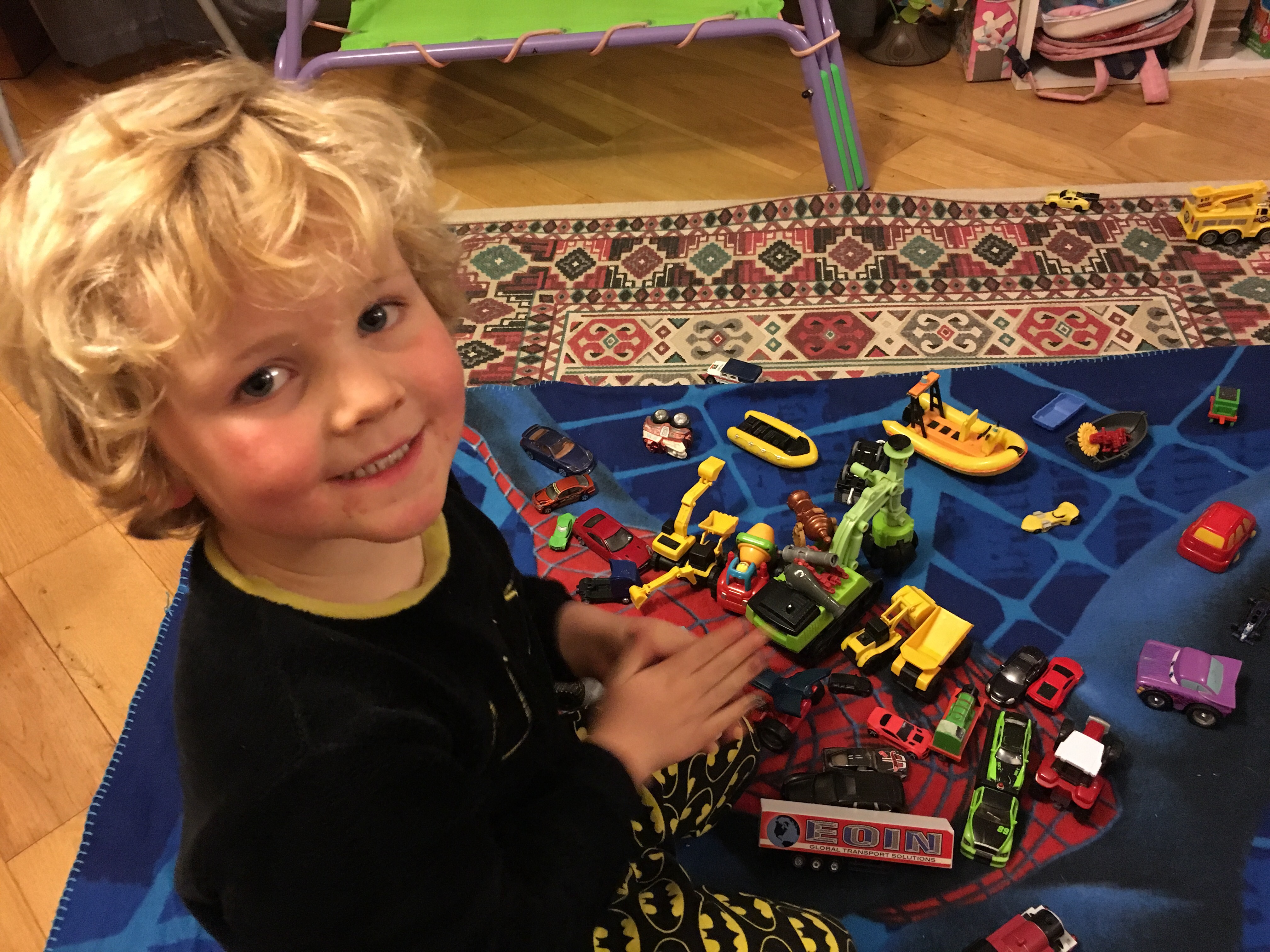I have loads of trucks and ships! I can imagine stories with them, playing on my Spiderman blanket!