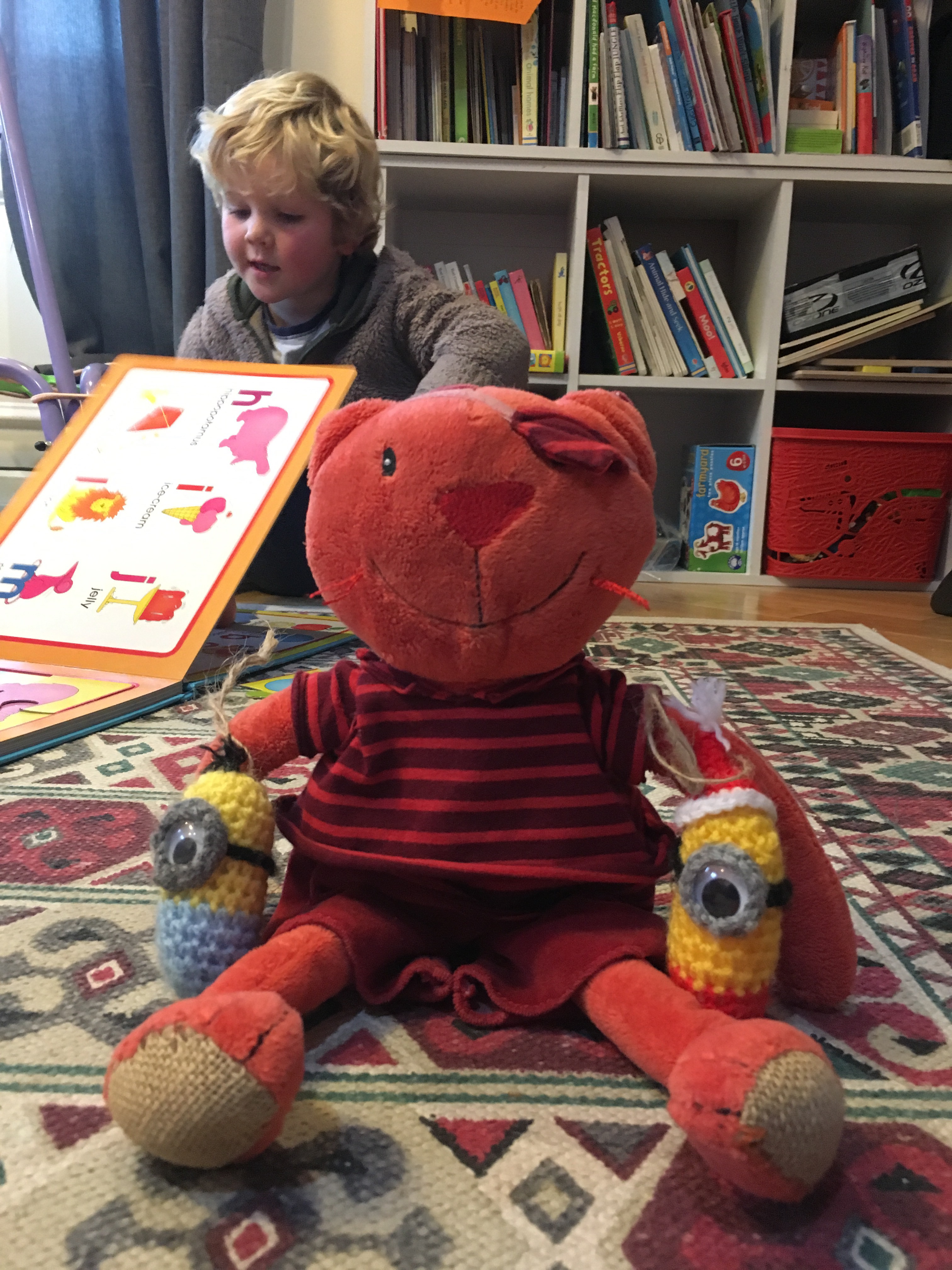 Bernard is good, I like to play with him. Thank you to your mother who offered to Manue a sewing kit to repair him from time to time!