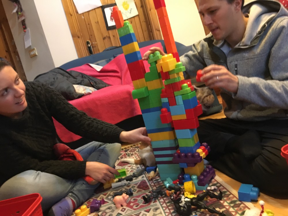 As you have already seen, I like playing Legos but I also like Duplos! Do you know that Simon builds giants structures? I like him to play with me.