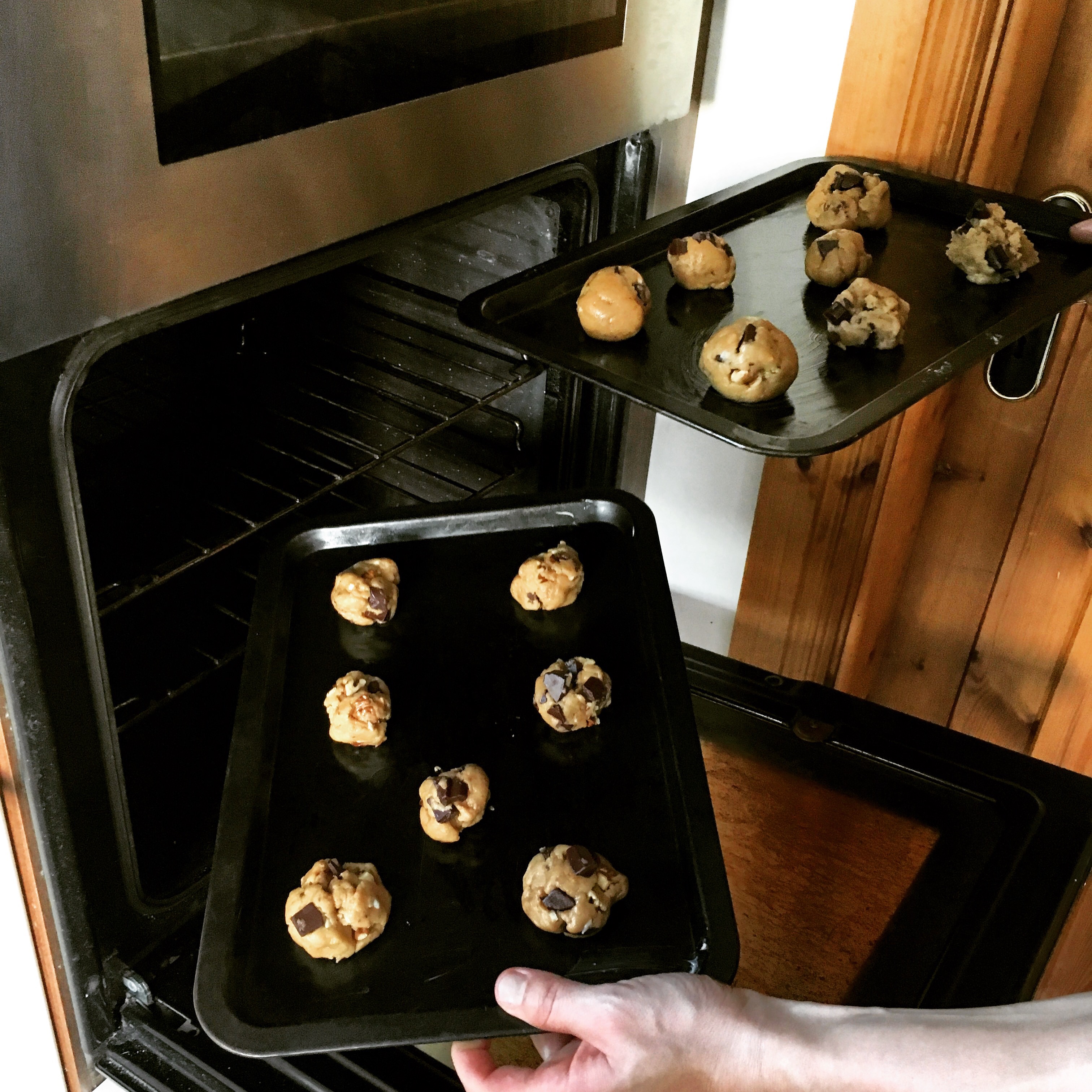 - Pour la version dans laquelle il y a une cerise, j’ai utilisé des cerises confites ; une minimum par cookie.