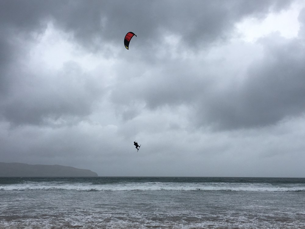 Aujourd’hui, au retour de notre balade quotidienne, nous avons eu la chance de voir Ryan s’entraîner à sauter en kitesurf.