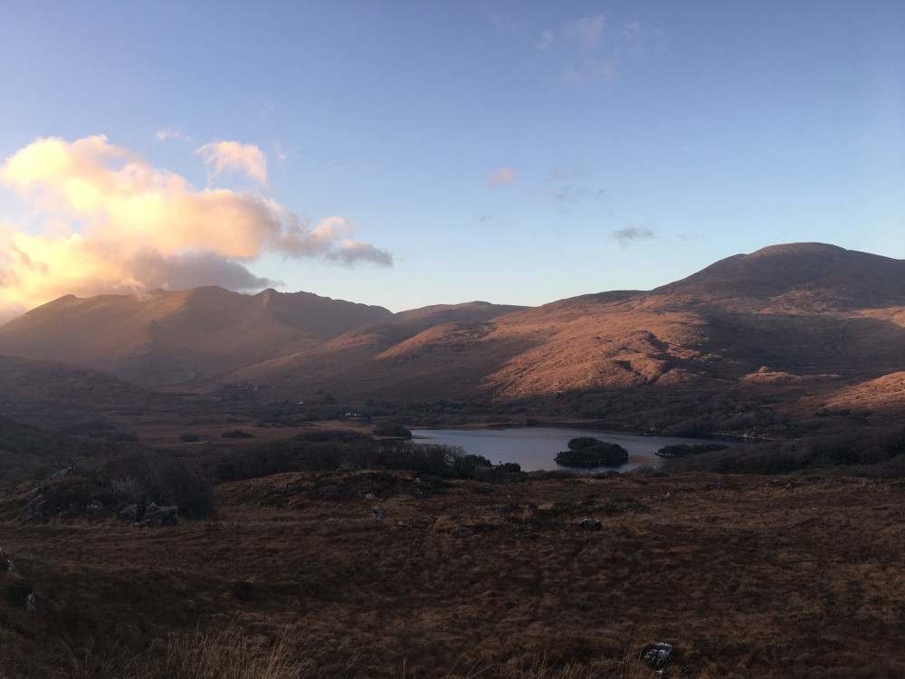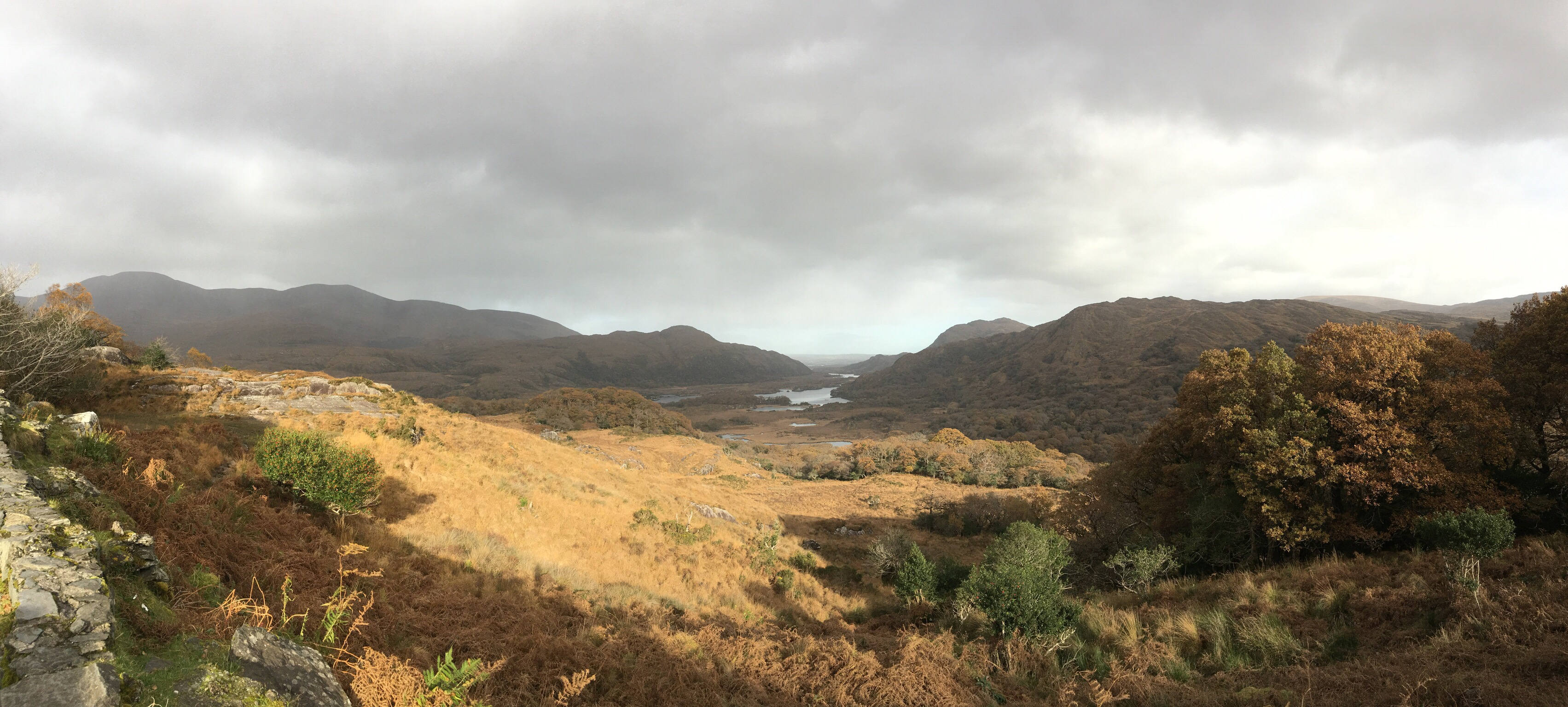 Voici la vue à ne pas manquer pour embrasser le panorama du Lough Lein, en gaélique, le Lac du savoir. Les premiers habitants (il y a env. 4000 ans) lui donnèrent ce nom car ils remarquèrent les allées et venues incessantes des grands de l’époque, qui venaient recueillir l’enseignement des moines de l’île d’Innisfallen.