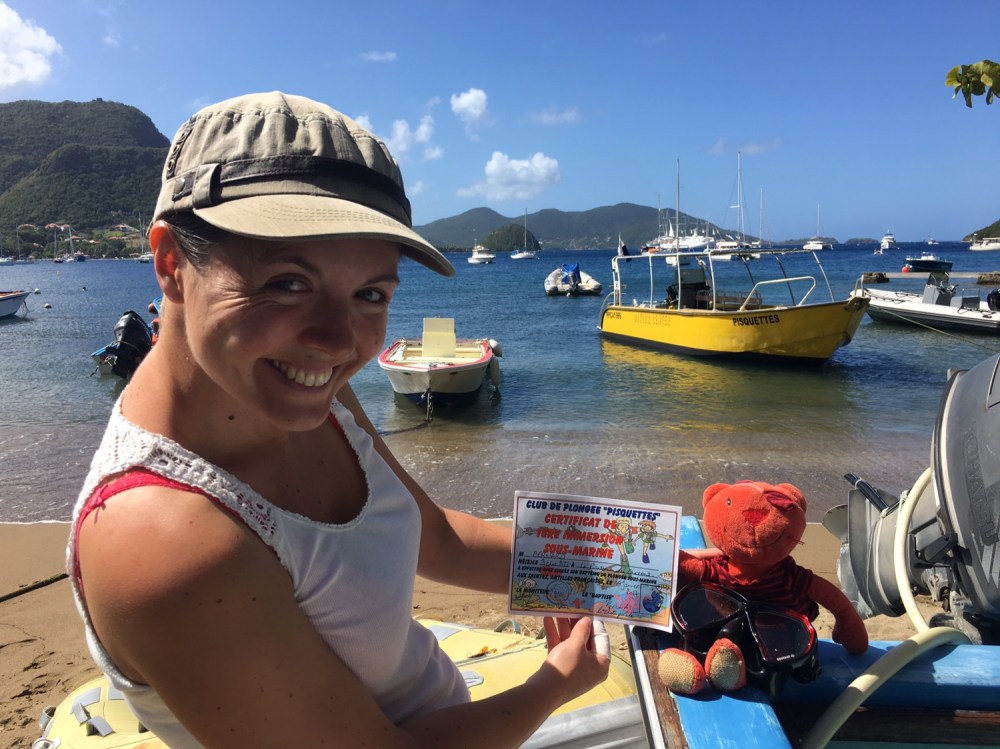 Voilà chose faite, aujourd’hui même 😁 Et je ne suis pas peu fier, j’ai même eu mon certificat, délivré par le moniteur de plongée du club Pisquettes aux Saintes. La classe non ?!