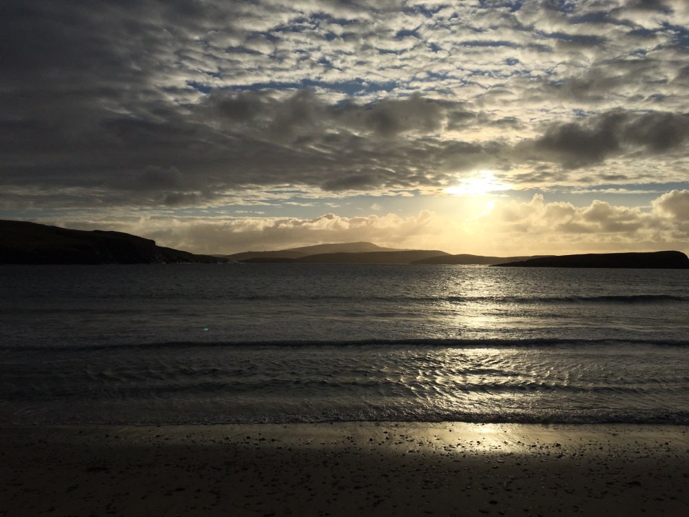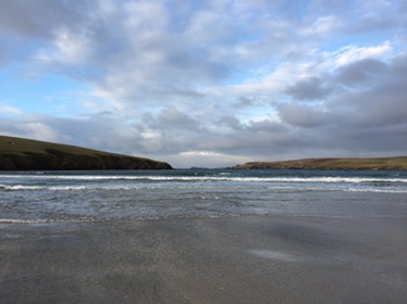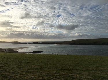 Pour le déjeuner et une belle balade, direction St Ninian’s sur la côte ouest où un tombolo relie les deux îles (cordon de sédiments, ici une magnifique plage de sable fin).