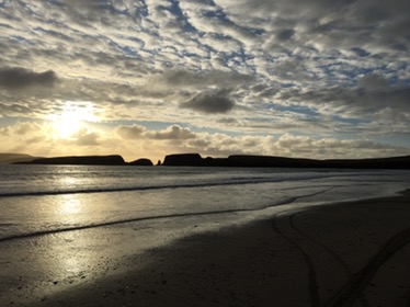 Puis première balade le long de Sandwick. Windy windy! Le temps est pluvieux mais nous sommes attirés par la force des vagues et la beauté du paysage ! On retrouve nos terres celtiques !