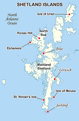 Les Shetland sont des îles situées en Écosse. Elles sont le berceau de quelques races endémiques d’animaux domestiques, dont les plus connues sont le poney et le chien de berger portant le nom de l’archipel (vous aurez l’occasion de voir nos photos !). L’archipel compte environ une centaine d’îles dont seize habitées. La population de l’archipel était de 22 210 habitants en 2009. La principale agglomération et le principal centre administratif des Shetland est Lerwick.