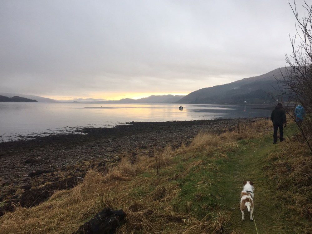 Depuis que nous sommes arrivés, nous faisons une grande marche par jour tous les trois. Et avec Islay bien sûr ! Seonaid nous fait découvrir les environs, magnifiques, et nous raconte mille histoires passionnantes sur les gens qui y vivent. De quoi bien améliorer notre anglais ! Avec l’accent écossais tout de même 😉