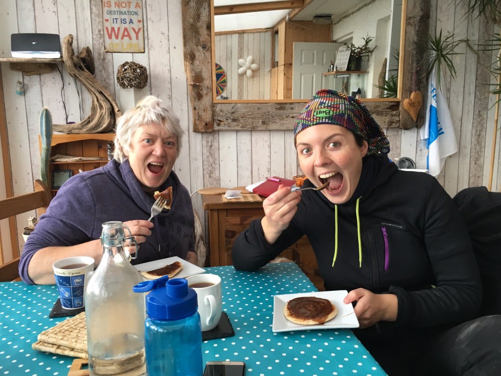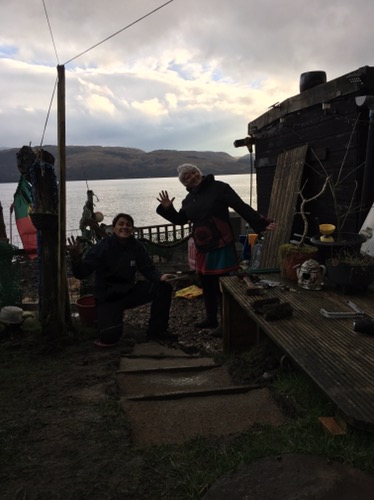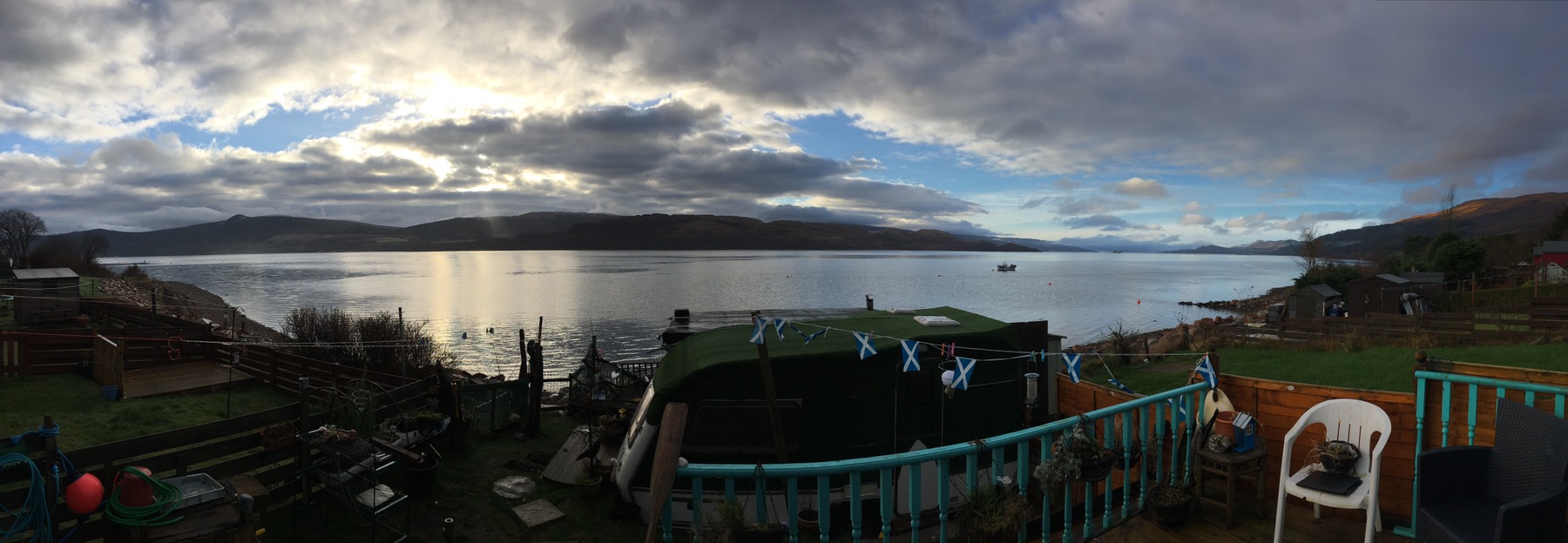 Voici Seonaid qui nous accueille chez elle ! Un sacré personnage, pour l’indépendance de l’Ecosse comme vous pouvez le constater grâce à son drapeau prônant le Yes au prochain référendum qui aura lieu l’année prochaine (pour mémoire le Non l’avait emporté en 2014). Des badges identiques sont présents un peu partout chez elle, sur sa voiture, son sac à main, son camper-van… bref, on adore !