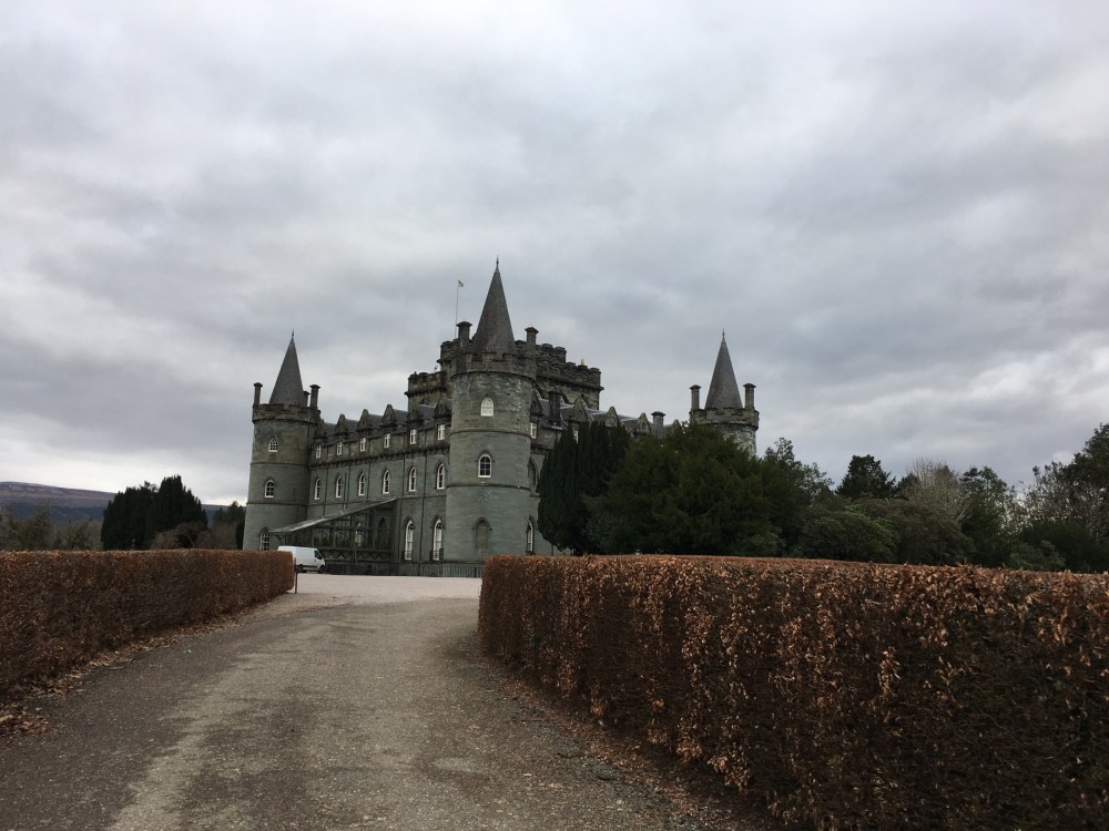 Nous sommes passés à côté du château… enfin l’un nombreux châteaux du clan Campbell, l’un des plus grands et des plus puissants clans écossais historiques des Highlands. La tour carrée au centre date du 15e mais tout le reste a été arrangé au 17e. La famille y vit encore aujourd’hui. Quel luxe !