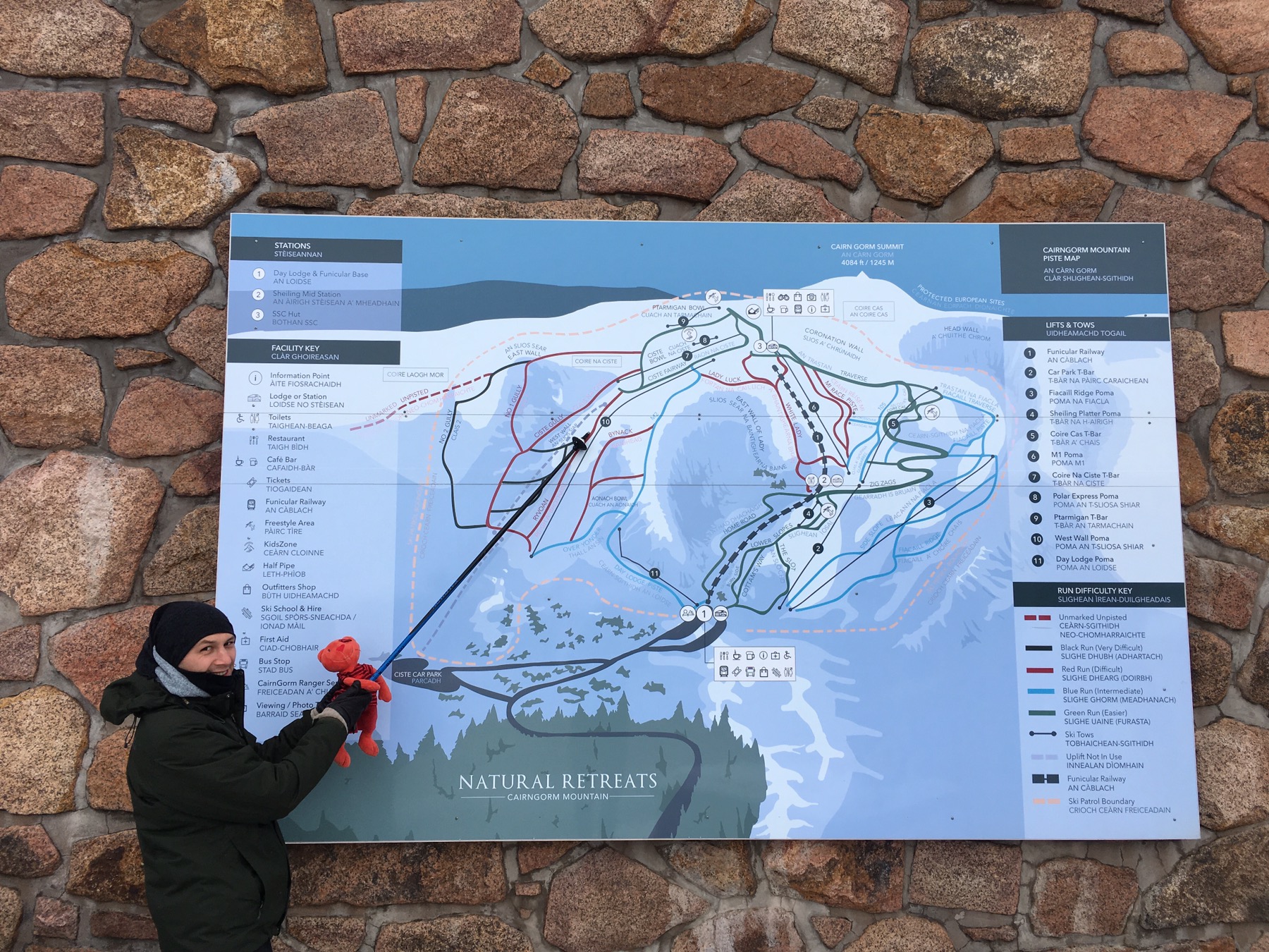 Derrière moi, le funiculaire qui nous emmène à plus de 1200m, en haut du Cairn Gorm.