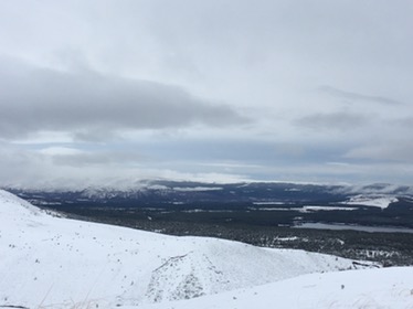 A défaut d’emprunter le funiculaire du Cairngorm Ski Center, nous avons profité du panorama et joué avec Bernard dans la neige (article à ce sujet ici).