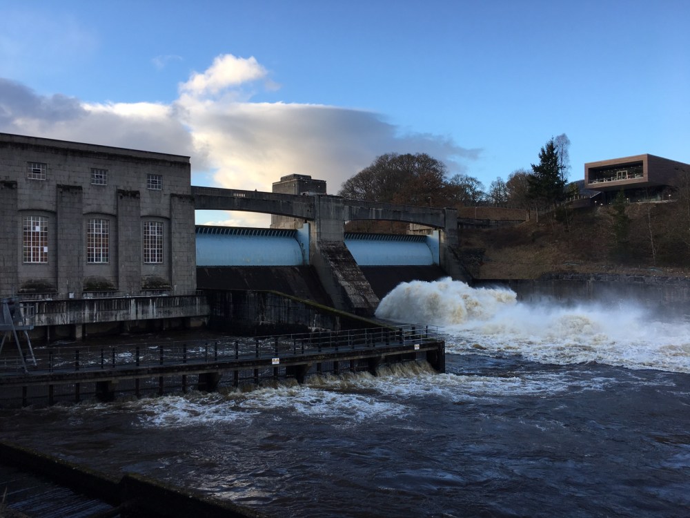 Après notre balade et un thé chaud pris à Pitlochry, nous nous sommes arrêtés au Fish Ladder, un barrage hydroélectrique par lequel passent les saumons lorsqu’ils quittent l’Atlantique pour se reproduire dans leurs rivières natales (d’avril à octobre). Un ingénieux système a été mis en place pour les aider : une échelle qui consiste en une série de bassins en escaliers que les saumons franchissent. Un compteur relève le nombre de passage. Il faudra revenir au printemps pour les voir !