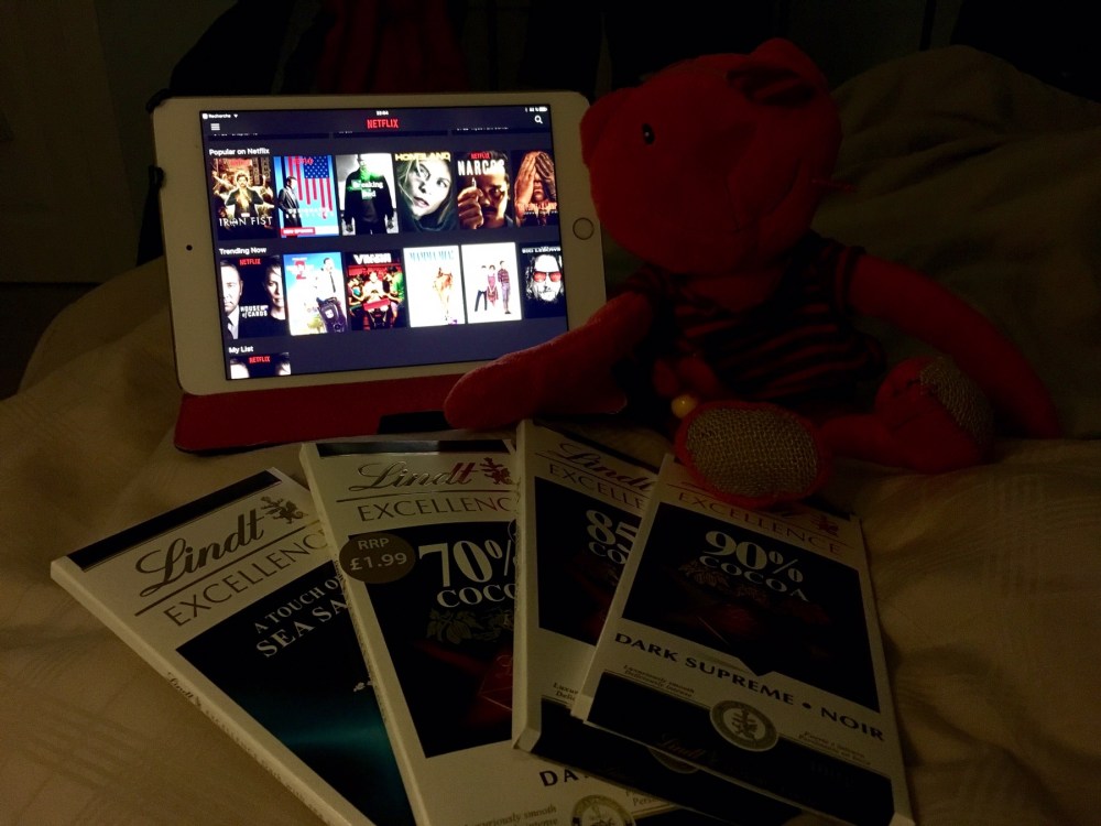 Notre programme ce samedi soir : au lit, connecté à Netflix pour regarder notre série du moment (House of Cards saison 4) et l’embarras du choicolat 😆