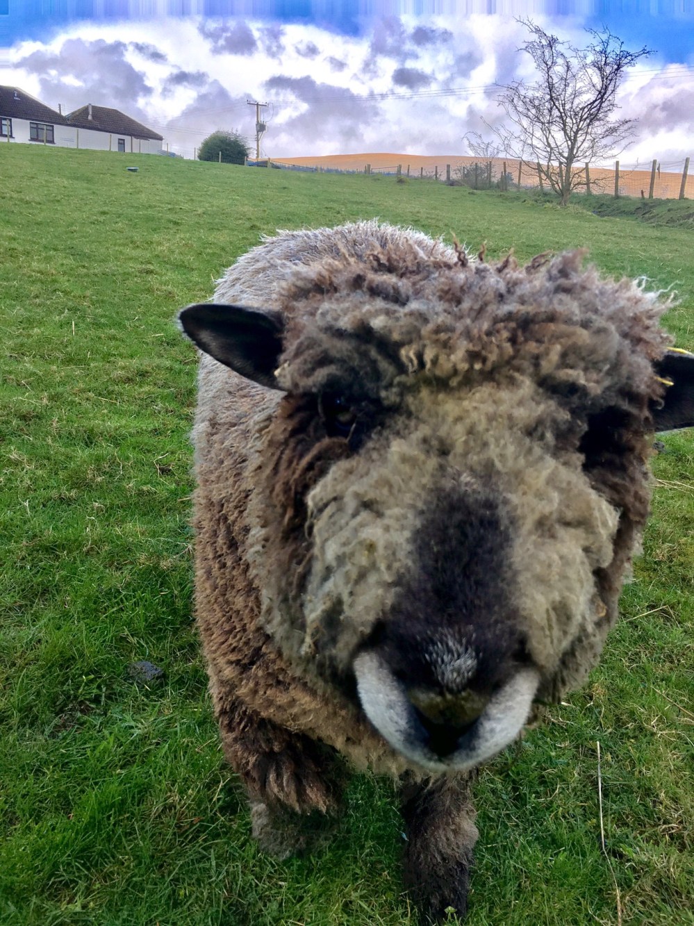 Notre première rencontre (après nos hôtes, les proprios, Wayne et Rebecca) fut celle de cet adorable mouton. Enfin mi mouton mi ourson plutôt. Jamais je n’avais vu pareille trogne !