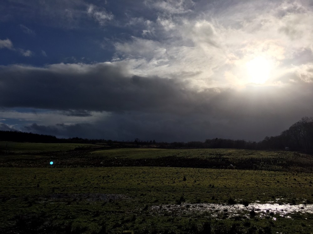 Notre refuge le temps d’une belle averse. Admirez les gouttelettes jaillissant autour de ce rayon de soleil…