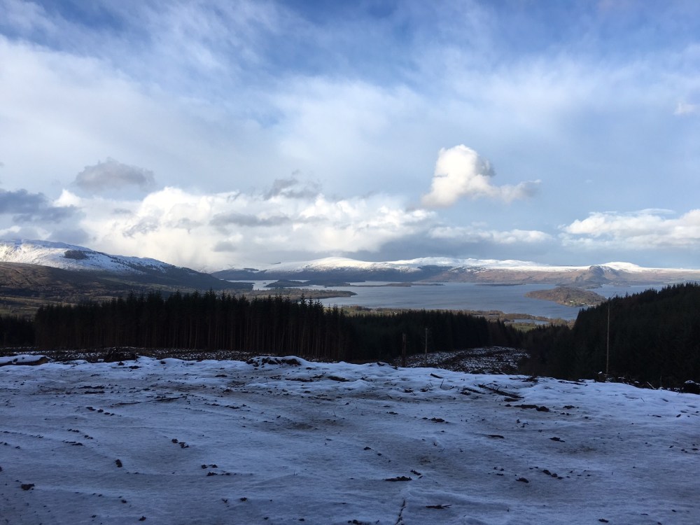 La neige est tombée une bonne partie de la nuit et aujourd’hui jusqu’à 15h. De quoi parfaire le panorama sur le Loch Lomond.