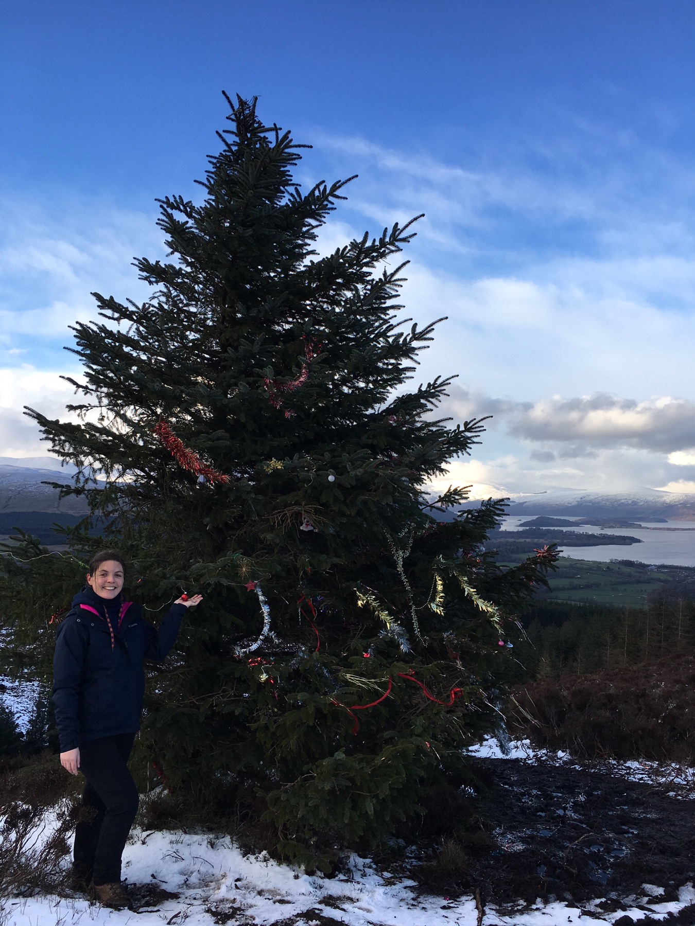 En haut de la colline, après 45mn de marche, un Christmas Tree continue de veiller sur les environs. Ils sont fous ces Écossais !