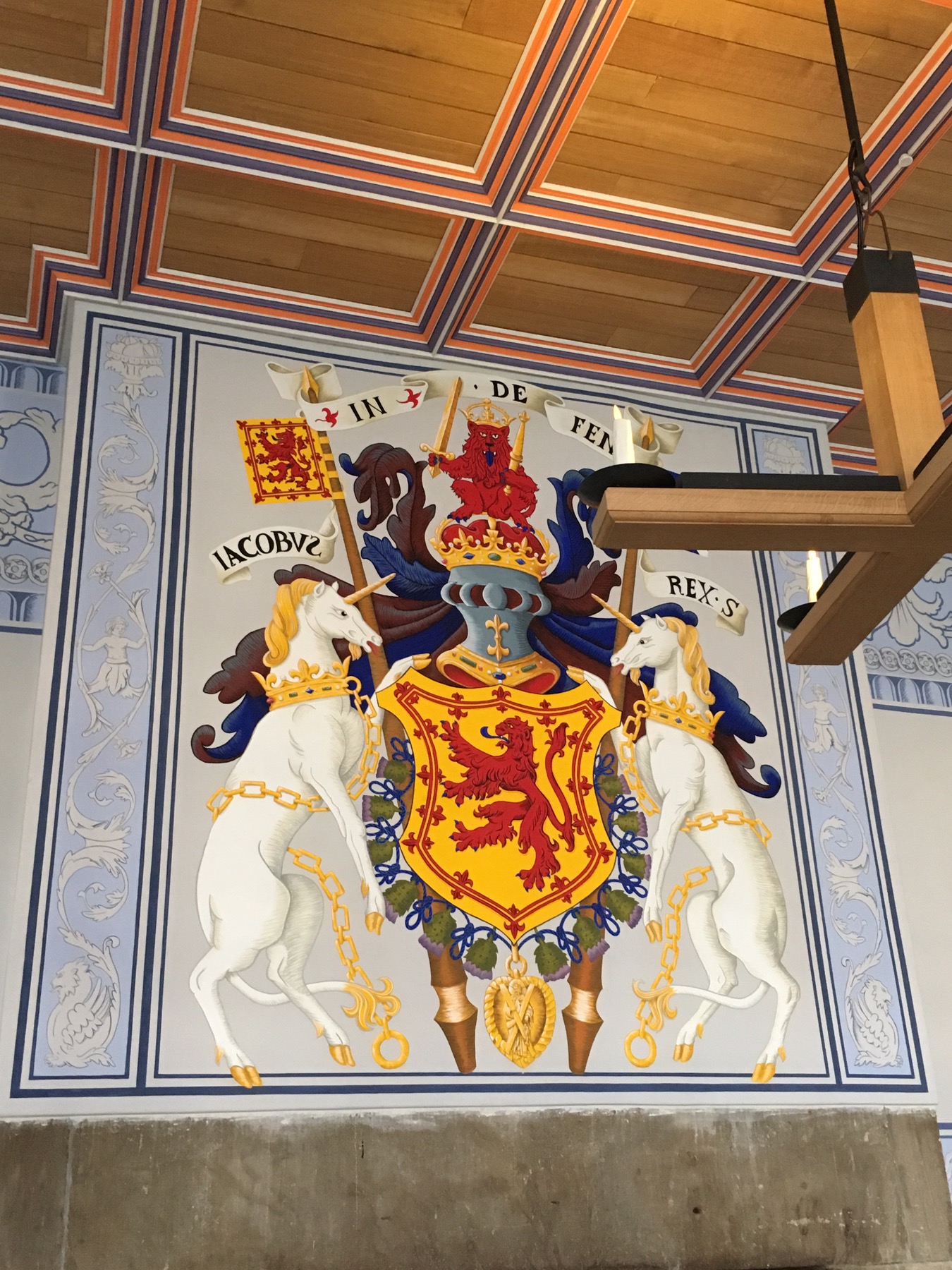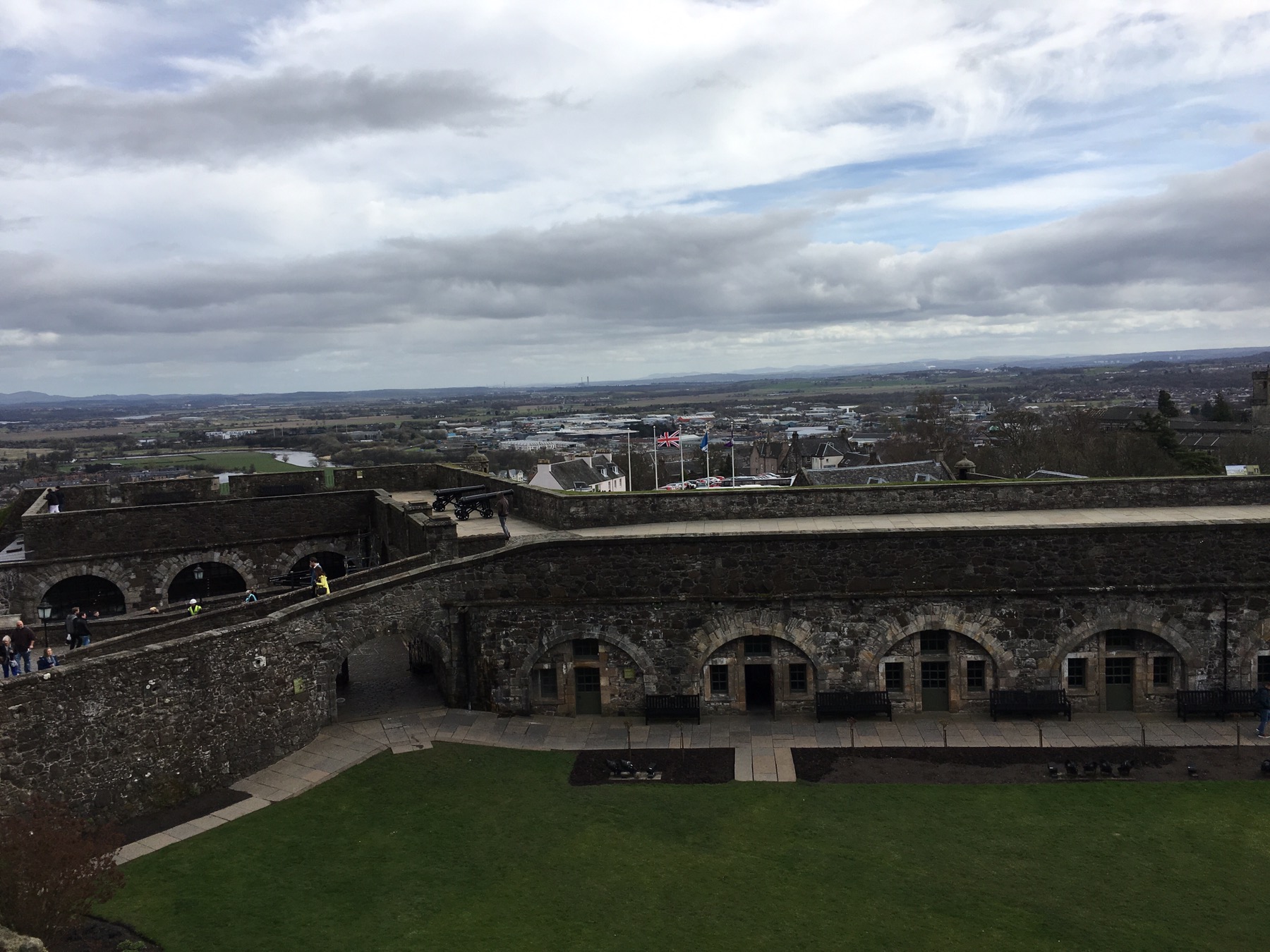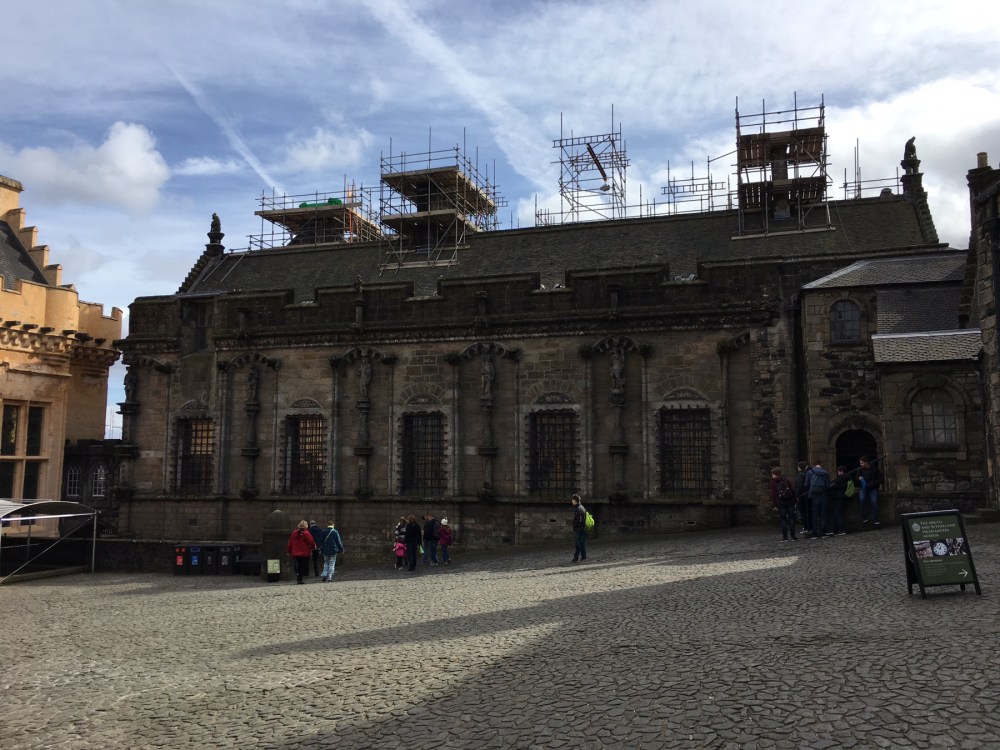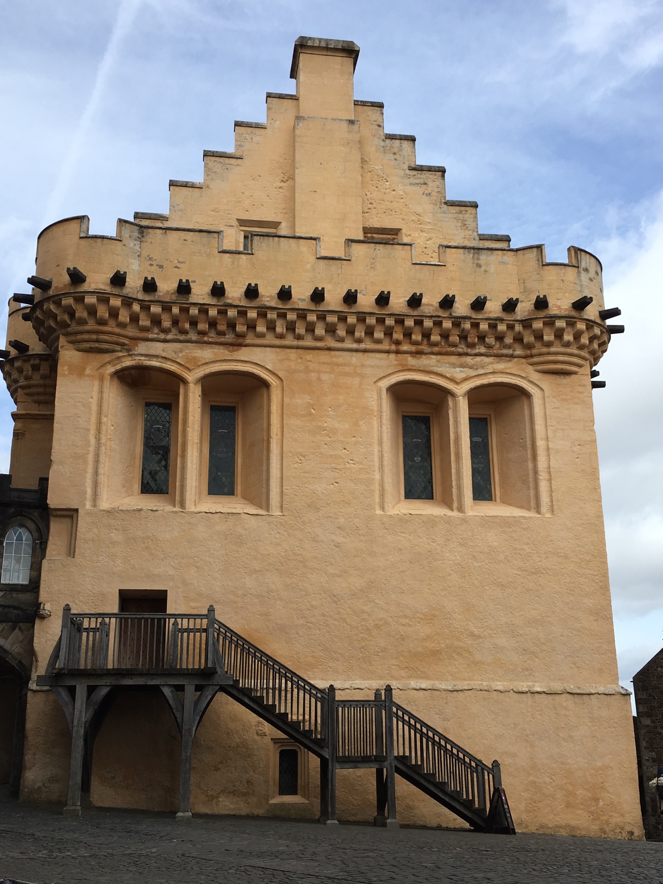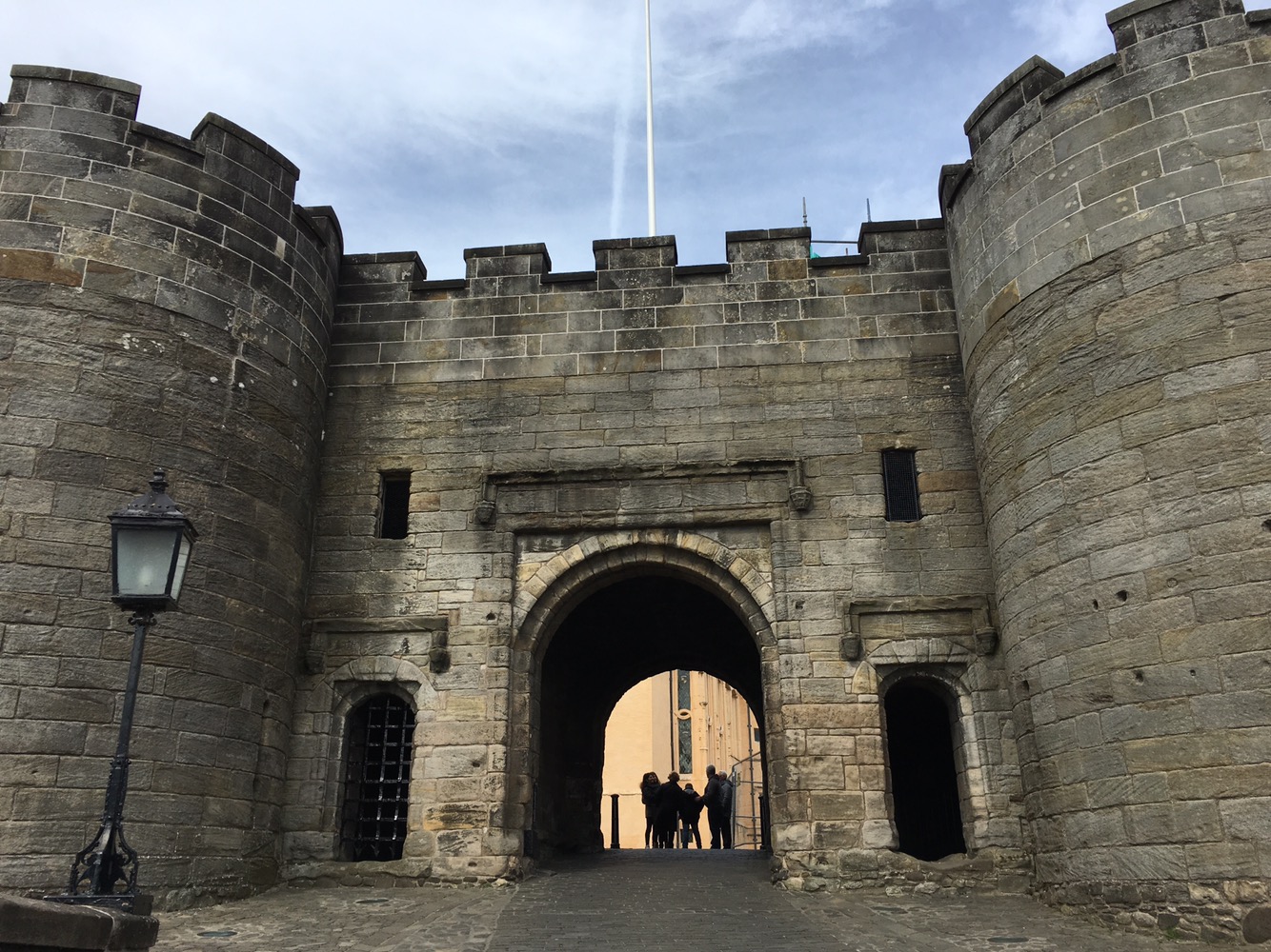 L’entrée du château de Stirling. Très peu de vestiges de l’époque de Robert the Bruce subsistent aujourd’hui. La plupart des constructions datent du 16e siècle et ont été réalisées par Jacques V (1512-1542), descendant de Robert the Bruce et l’un des nombreux héritiers de la dynastie Stuart (qui régna sur l’Ecosse de 1371 à 1714 tout de même !).