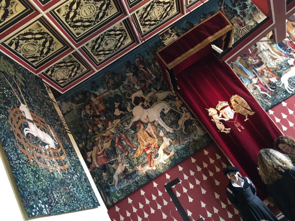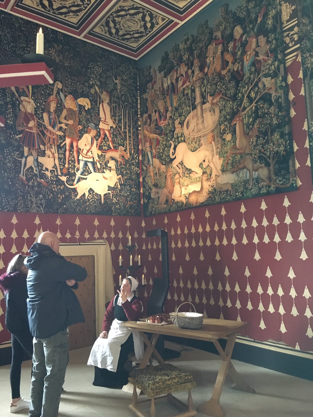 Les tapisseries que vous apercevez ci-dessus sont des reproductions des originales exposées aujourd’hui à New York (on n’a pas compris pourquoi d’ailleurs !). Elles ont été tissées par des artisans ces 7 dernières années dans les poudrières du château, respectant chaque motif original. Un travail de titan !