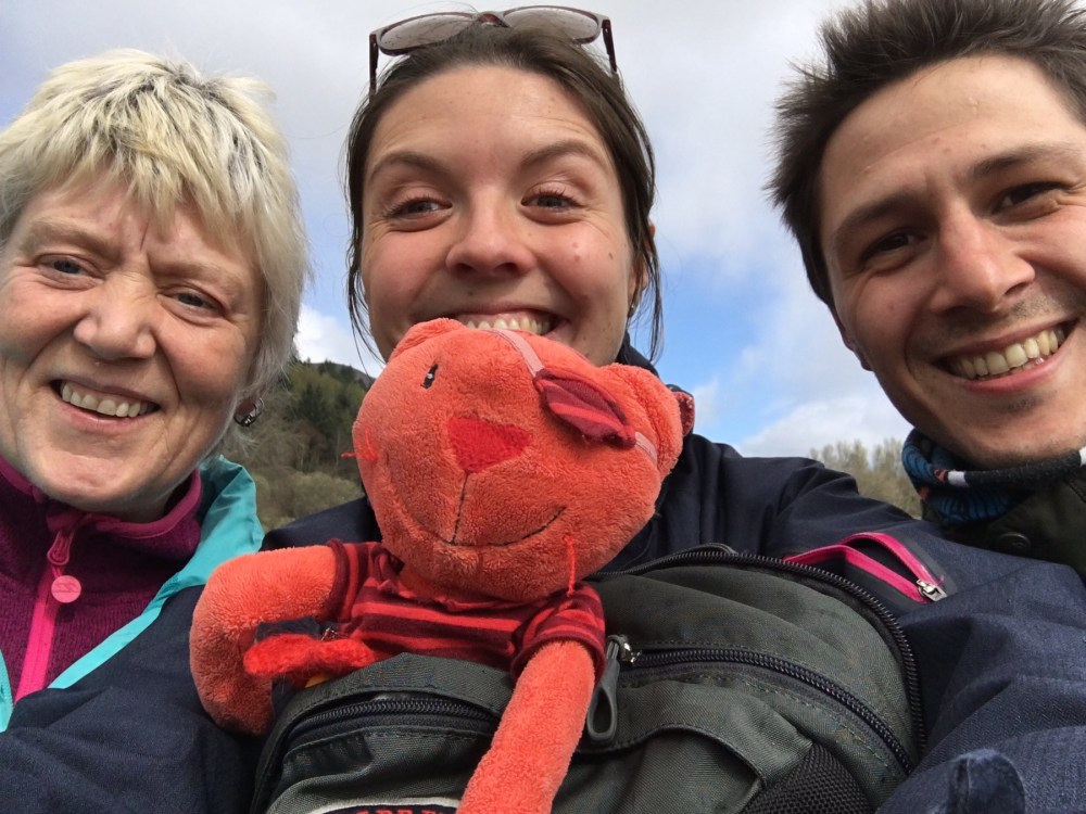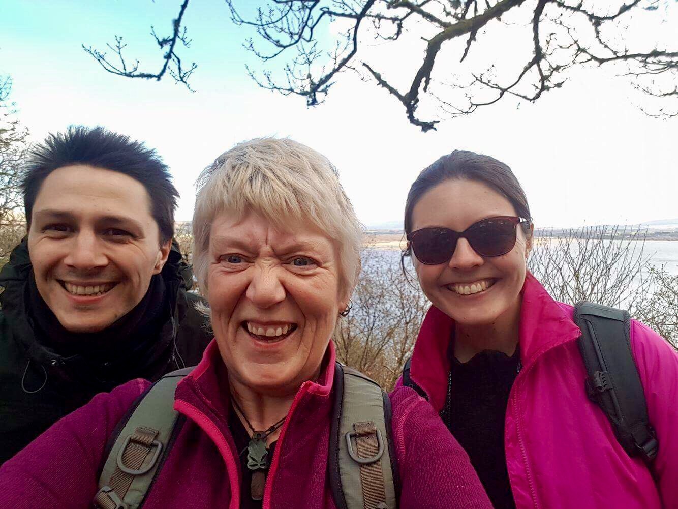 Juste derrière Seonaid et Islay, on aperçoit notre île !