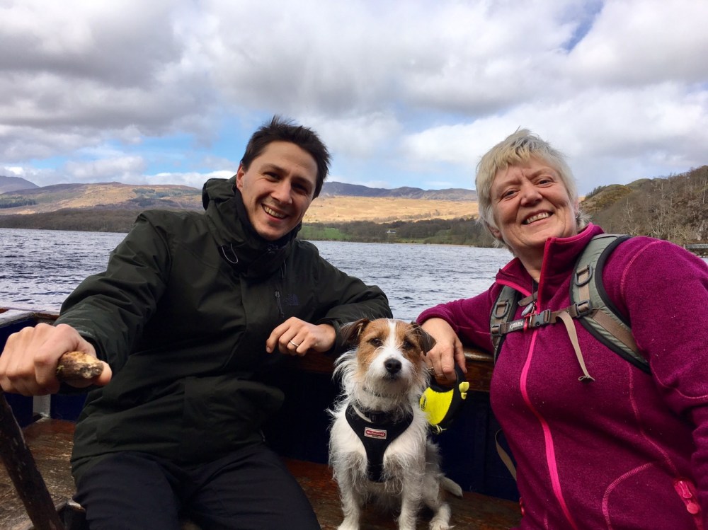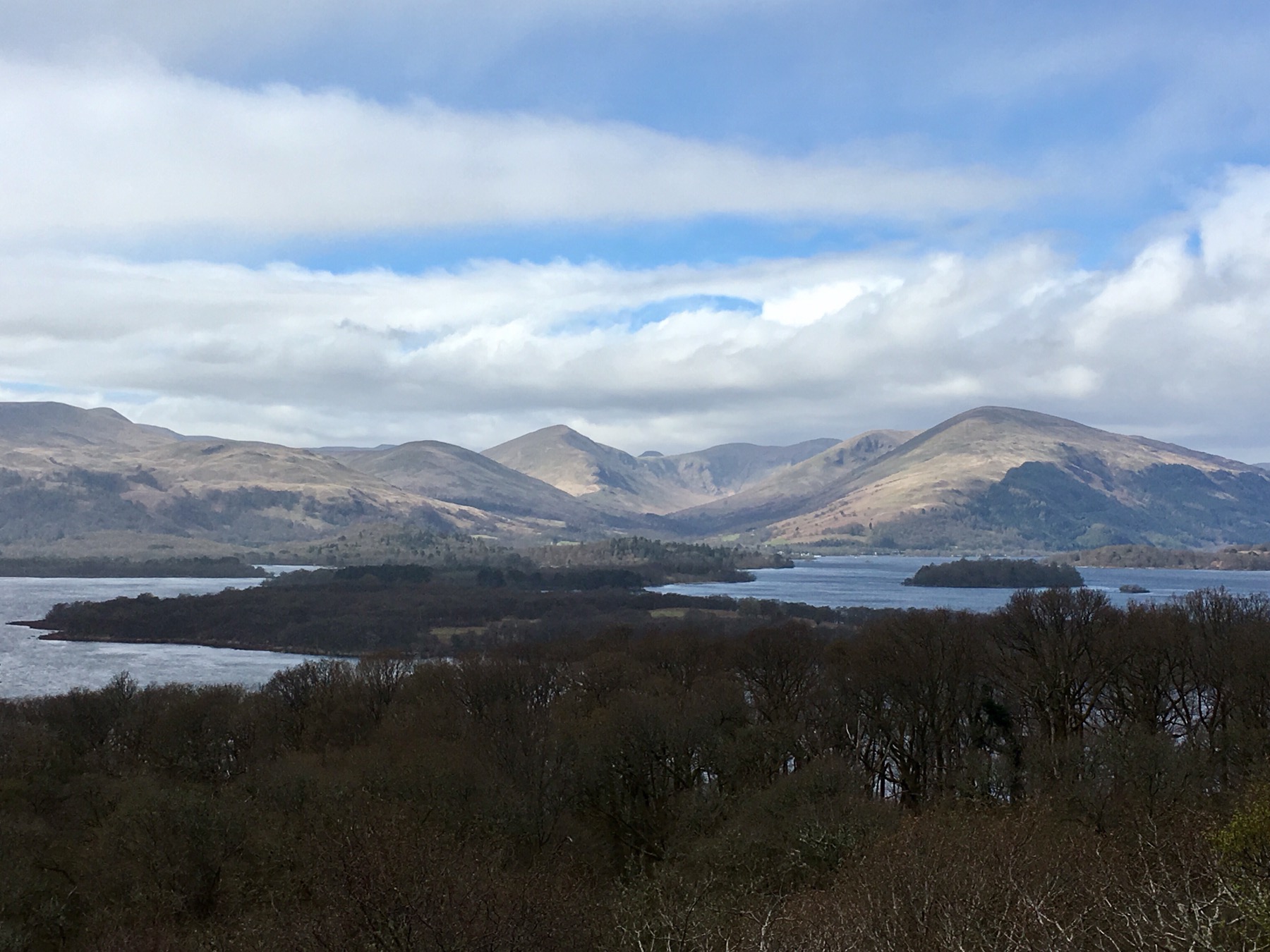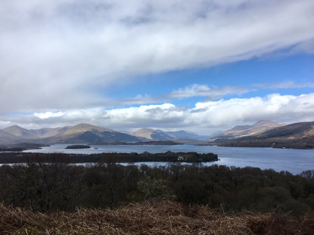 On choisit de grimper la colline pour profiter de la vue sur le Loch Lomond. Je me suis calé bien au chaud dans la veste de Simon pour ne pas avoir à faire trop d’efforts 😉