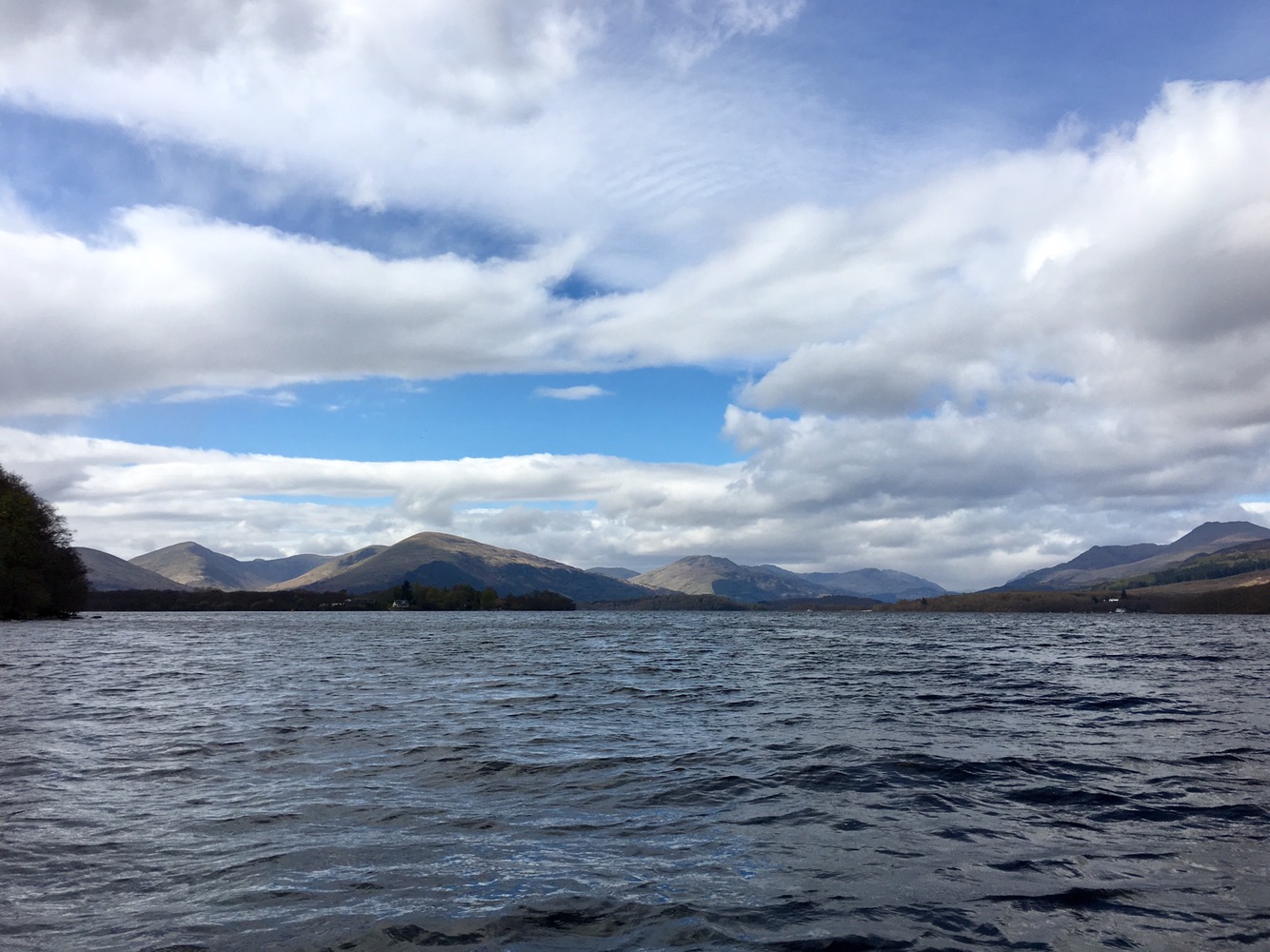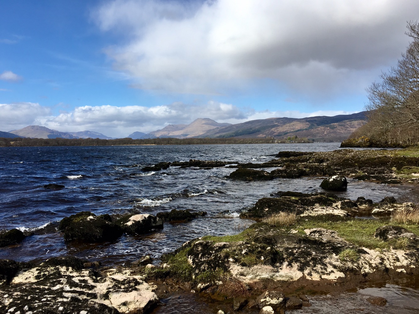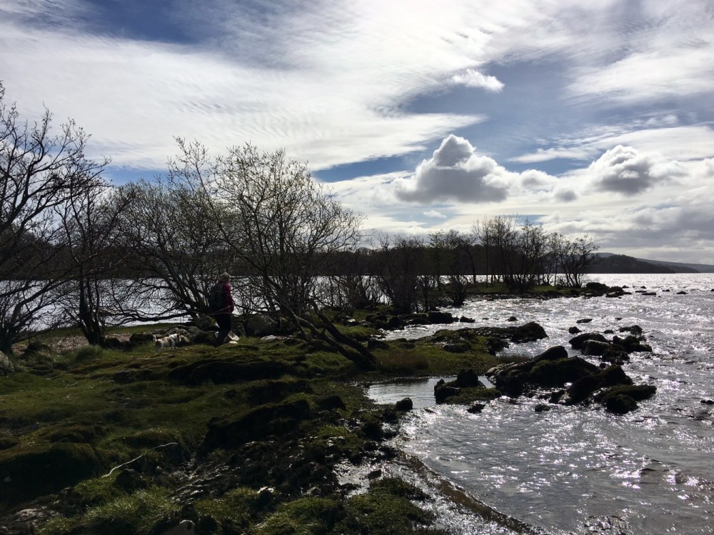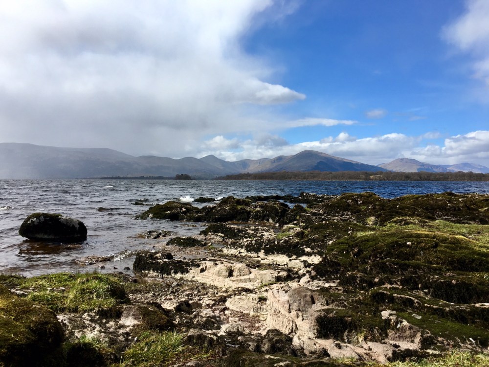 Après déjeuner, le soleil au-dessus de nos têtes jouant à cache cache avec les nuages, nous décidons de rejoindre Balmaha, de l’autre côté de la rive.