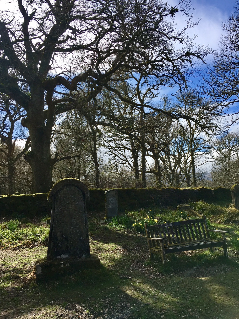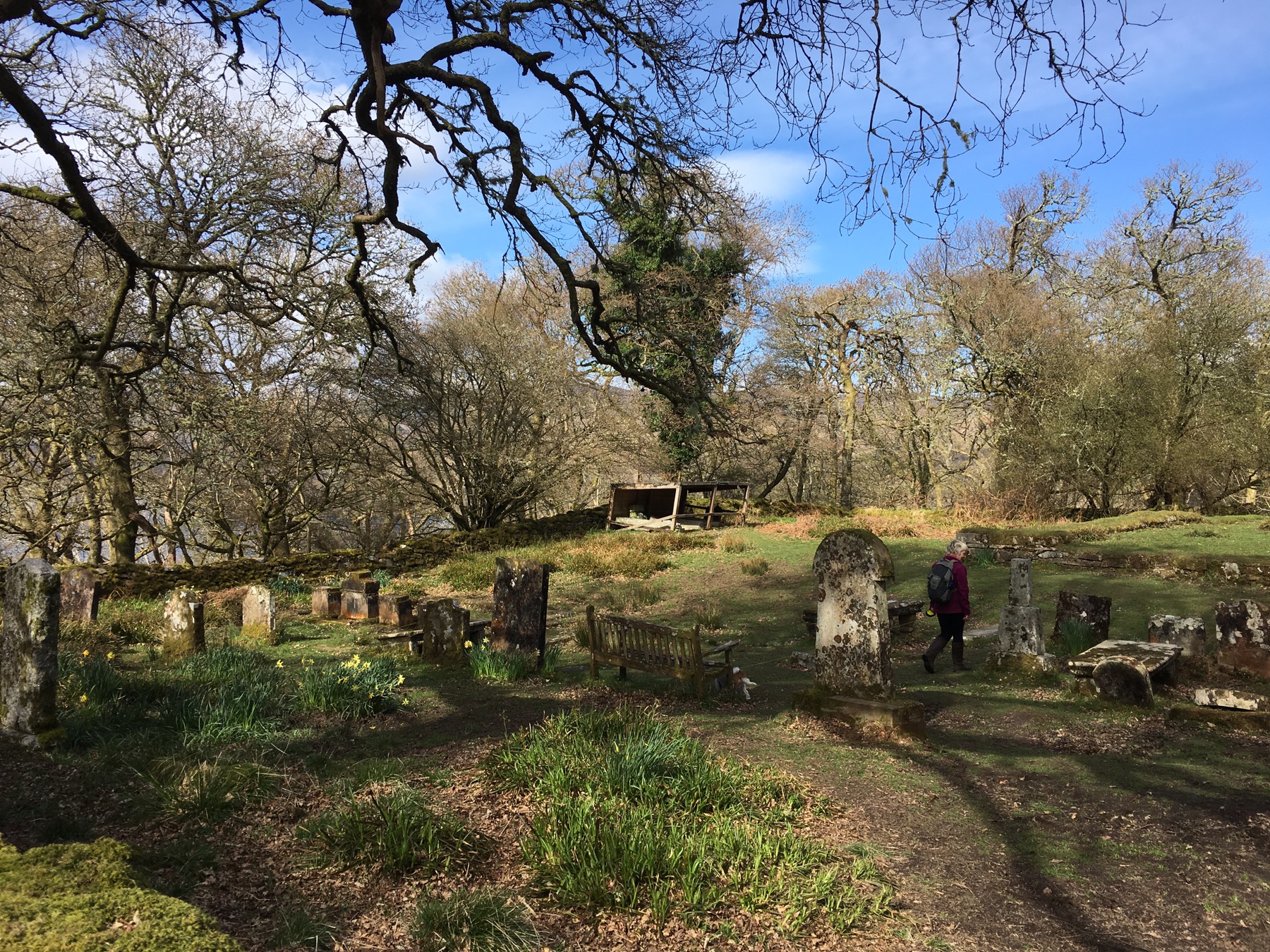 En remontant de l’autre côté de l’île, nous découvrons un vieux cimetière et les ruines d’une église paroissiale active jusqu’en 1621. En effet, des fermiers étaient installés sur l’île jusqu’au début du 20e siècle et cultivaient le blé et l’avoine. Difficile à croire quand on voit la topographie de l’île mais vrai ! En revanche, l’île doit son nom Inchcailloch (signifiant « l’île de la vieille femme » en gaélique) à Sainte Kentigerna, une nonne ayant élue domicile ici jusqu’à sa mort en 734. La légende veut qu’un couvent ait été établi sur l’île après sa mort. Seul Dieu le sait…!