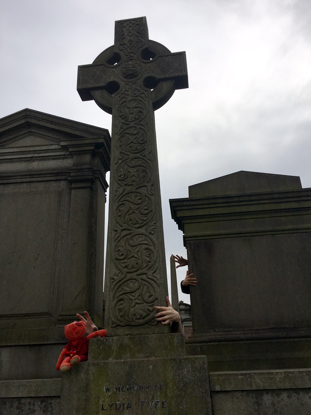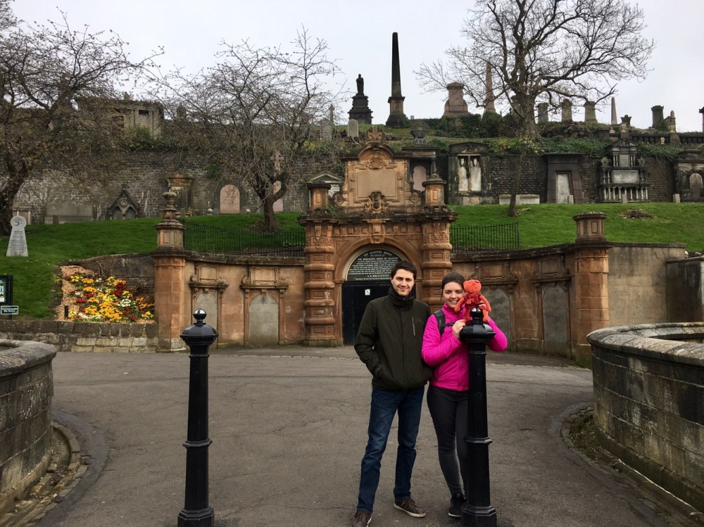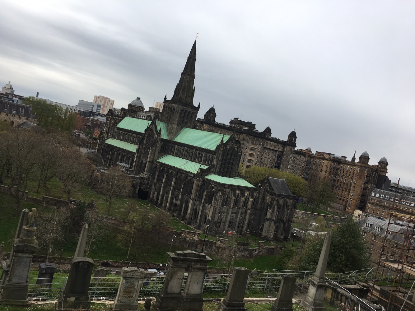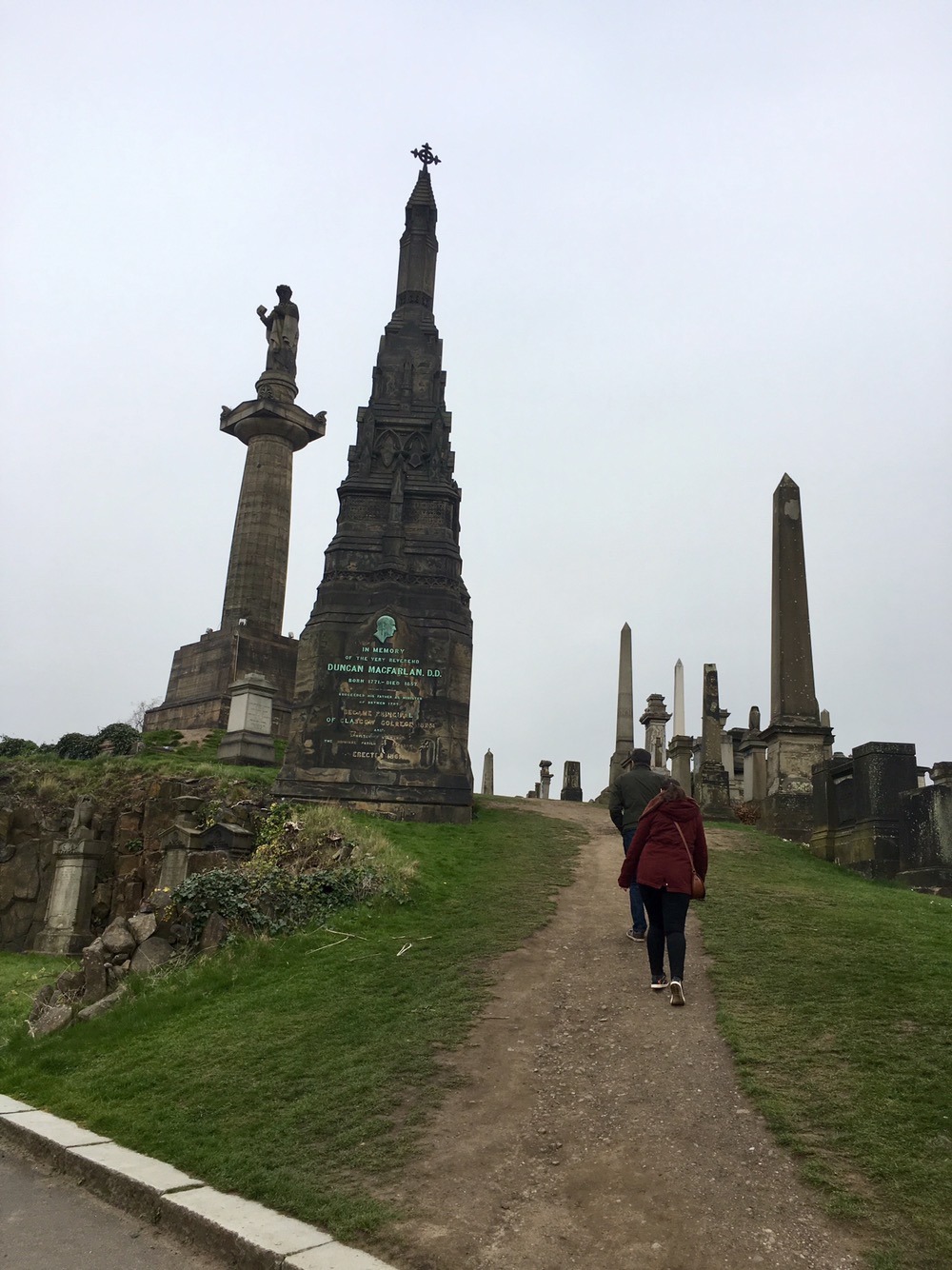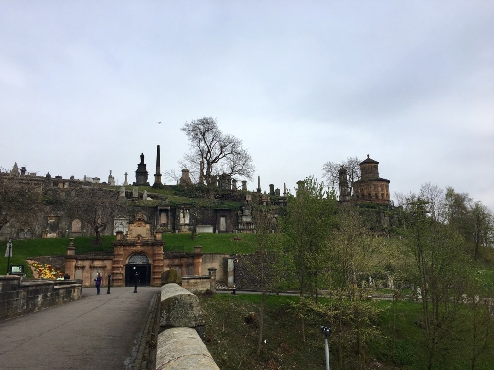 Heureusement, aujourd’hui, à Glasgow, nous avons déambulé dans Necropolis, un gigantesque cimetière ouvert en 1832 en centre ville. Et ce ne sont pas les fantômes qui manquent… j’ai presque eu la trouille ! Faut dire que plus de 50 000 Ecossais reposent ici… Par chance, il faisait jour !