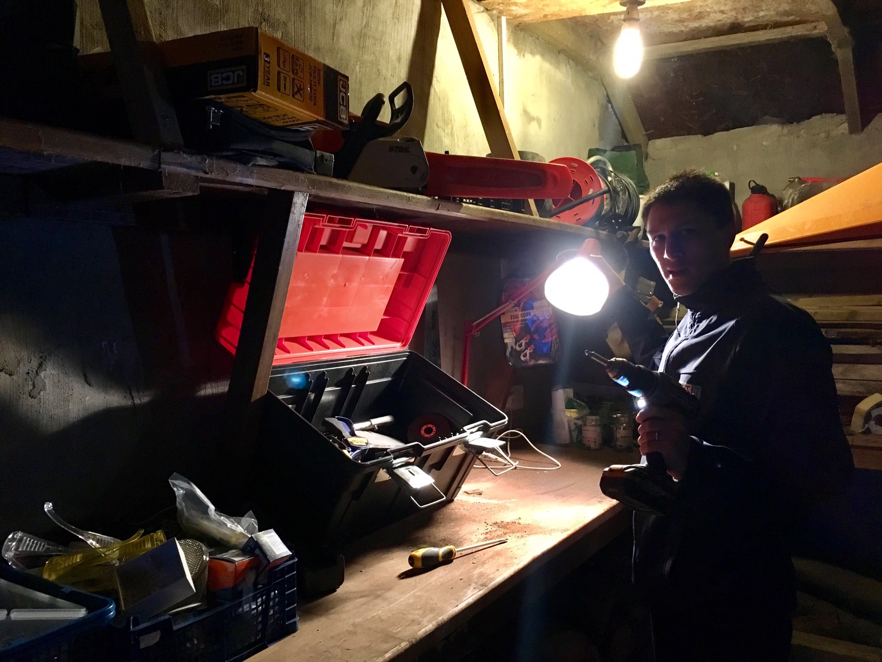 Bricolage et MacGyver à Fruin Farm ! Avec son imper jaune ci dessus, un jeune Workaway allemand qui nous a formé à notre arrivée.