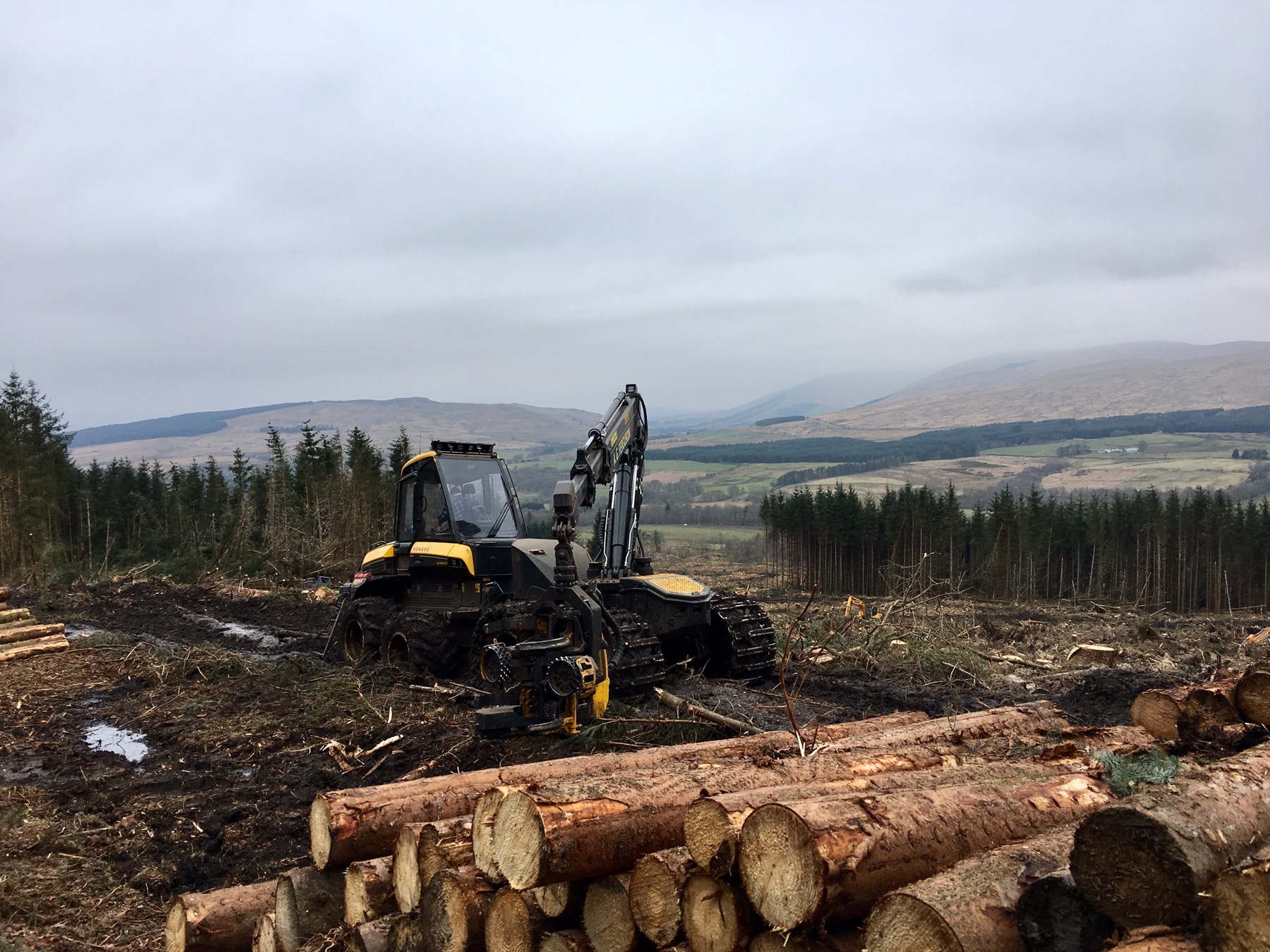 Il s’agit d’une belle abatteuse ponsse d’après la couleur.