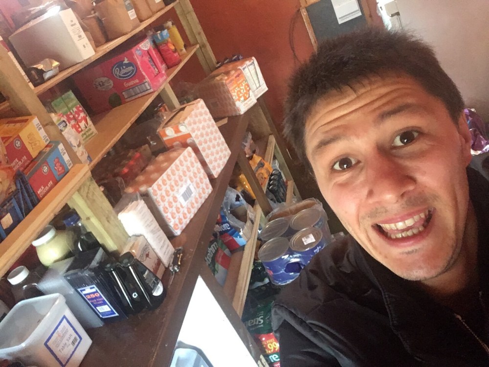 Simon dans « the barn », la réserve du resto.